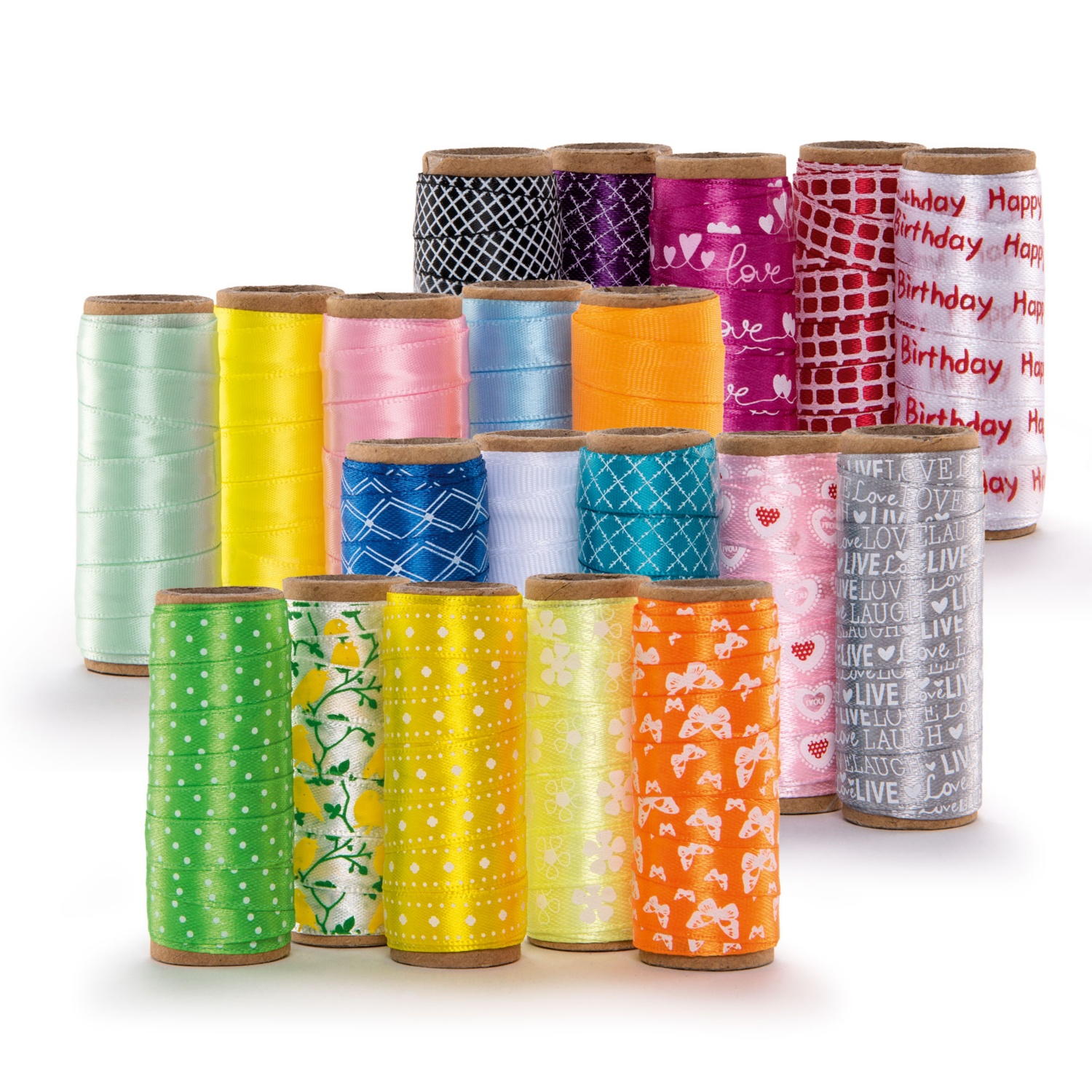 zum Verpacken, Basteln und Dekorieren, 5 Spulen à 3 m (Breite ca. 1 cm)