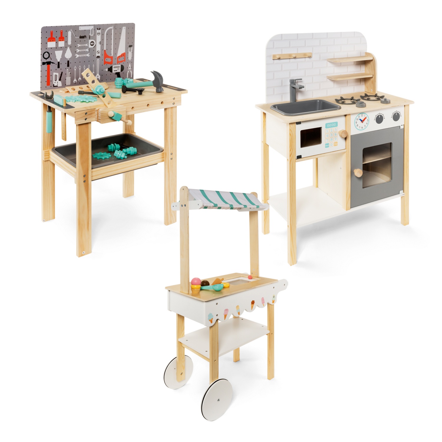 TOYLINO Holz-Küche/Eiswagen/Werkbank