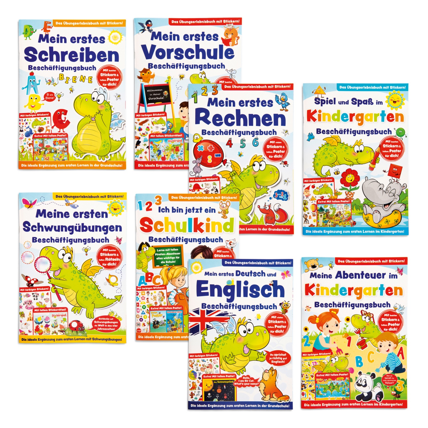 Viele Verschiedene Übungsbücher für Kindergarten, Vorschule und die ersten Schuljahre