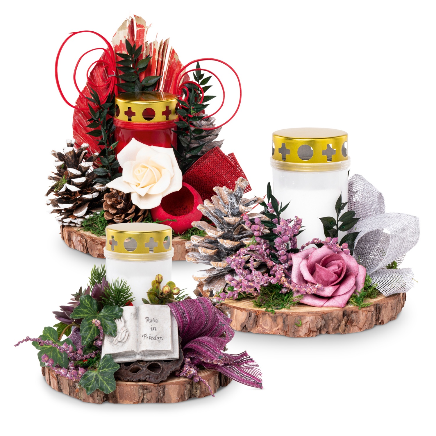 liebevoll dekorierte Arrangements zum Gedenken an die Liebsten