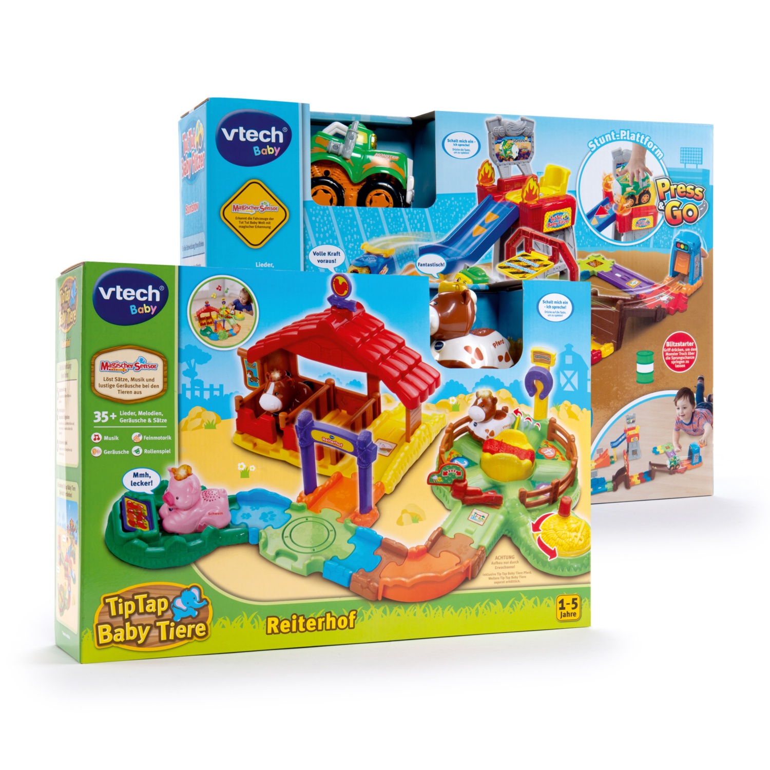 mit vielen beweglichen Elementen für abenteuerlichen Spielspaß und zur Förderung der Motorik, jeweils inkl. eines Fahrzeuges/Tieres mit lustigen Sätzen, Liedern und Melodien, für Kinder ab 12 Monaten geeignet, inkl. Batterien Bitte beachten Sie, dass diese Aktionsartikel, im Unterschied zu unserem dauerhaft erhältlichen Sortiment, nur in begrenzter Anzahl zur Verfügung stehen. Abgabe nur in Haushaltsmengen und solange der Vorrat reicht. Sollten bestimmte Produkte, trotz sorgfältiger Planung, aufgrund unerwartet hoher Nachfrage, am ersten Aktionstag ausverkauft sein, bitten wir um Verständnis. Bei Textilien und Schuhen sind teilweise Modelle nicht in allen Größen erhältlich. Beim Kauf eines Elektro-/Elektronikartikels können Sie Zug um Zug ein Gerät gleichwertiger Art unentgeltlich in unserer Filiale zurückgeben. Kein Flaschenpfand, inkl. sämtlicher Steuern. Alle Artikel ohne Dekoration. Die Abbildungen verstehen sich als Serviervorschläge bzw. Symbolfotos. Bei Preissenkungen ist die Angabe der %-Senkung kaufmännisch gerundet. Wir führen unterschiedliche Verpackungen. In unseren Filialen wird jeweils nur eine Verpackungsart angeboten. Bitte beachten Sie, dass vereinzelte Filialen ein abweichendes Sortiments- und Aktionsartikelangebot führen. Diese sind auf hofer.at/filialen zu finden sowie vor Ort entsprechend gekennzeichnet. Technische und optische Änderungen sowie Satz- und Druckfehler vorbehalten.