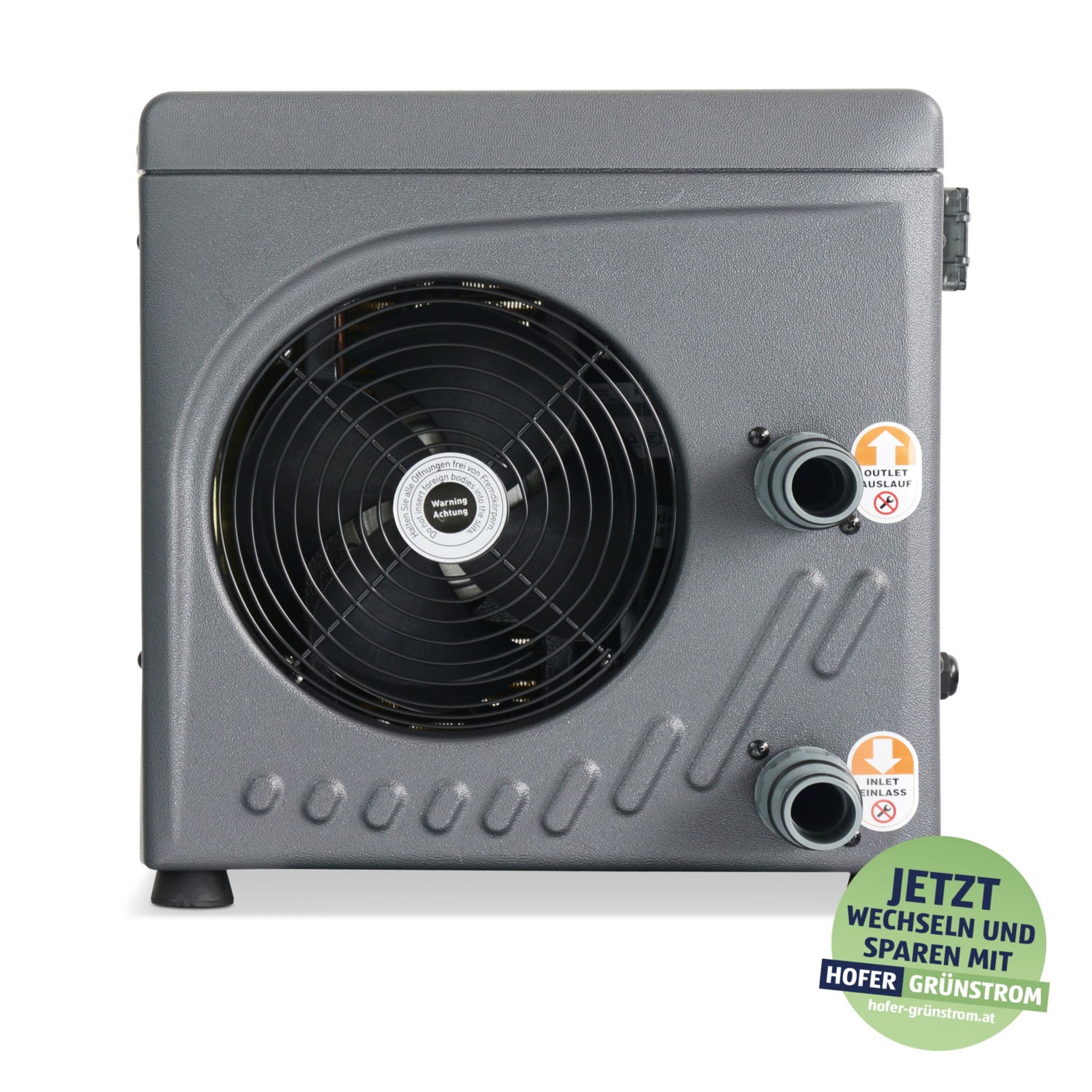 Die automatische Wärmepumpe Mini mit integriertem Durchflusssensor ermöglicht Ihnen Badevergnügen im perfekt temperierten Schwimmbadwasser. Durch die einfache, jederzeit auch nachträglich mögliche Installation steht einem ausgedehnten Sommer mit angenehmen Pooltemperaturen nichts im Wege. Die Wärmepumpe Mini ist besonders wartungsarm und dank ihrer Digitalsteuerung mit LED-Display besonders benutzerfreundlich. Die Wärmepumpe Mini ist aufgrund des verbauten Titan-Wärmetauschers auch für Salzwasserpools geeignet. Die Salzkonzentration darf dabei 0,50 % (entspricht 5 g/l bzw. 5.000 ppm) nicht überschreiten.