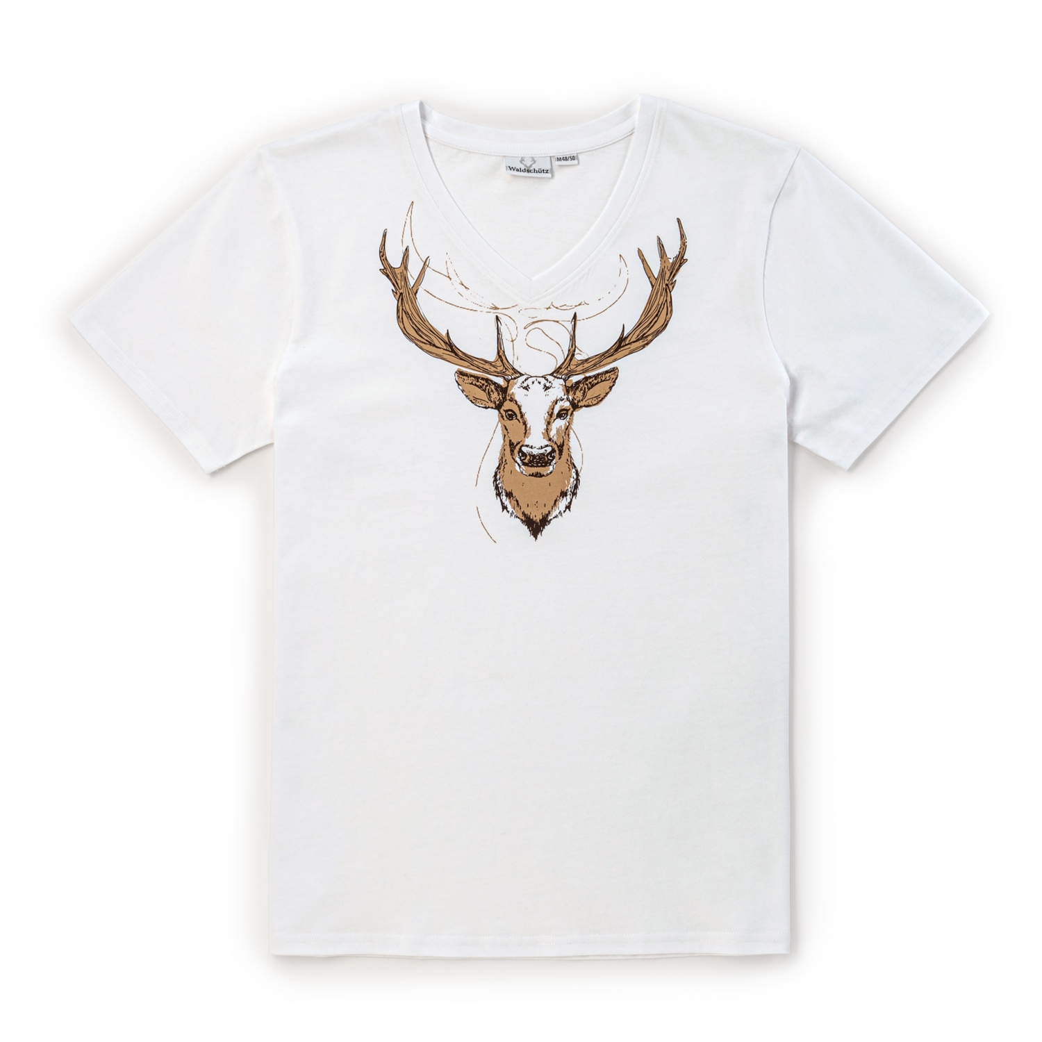 WALDSCHÜTZ Herren-Trachten-T-Shirt, Weiß/Hirsch, Gr. 48/50