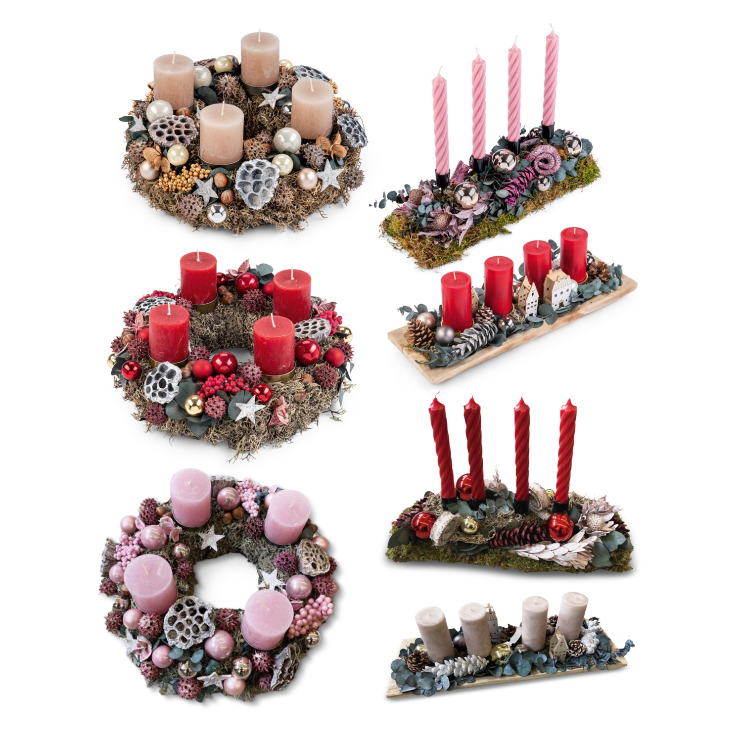 Türkranz, Adventkranz oder Adventarrangement in diversen Ausführungen, Ø Kränze: 30 - 40 cm (je nach Modell), exklusiv dekoriert