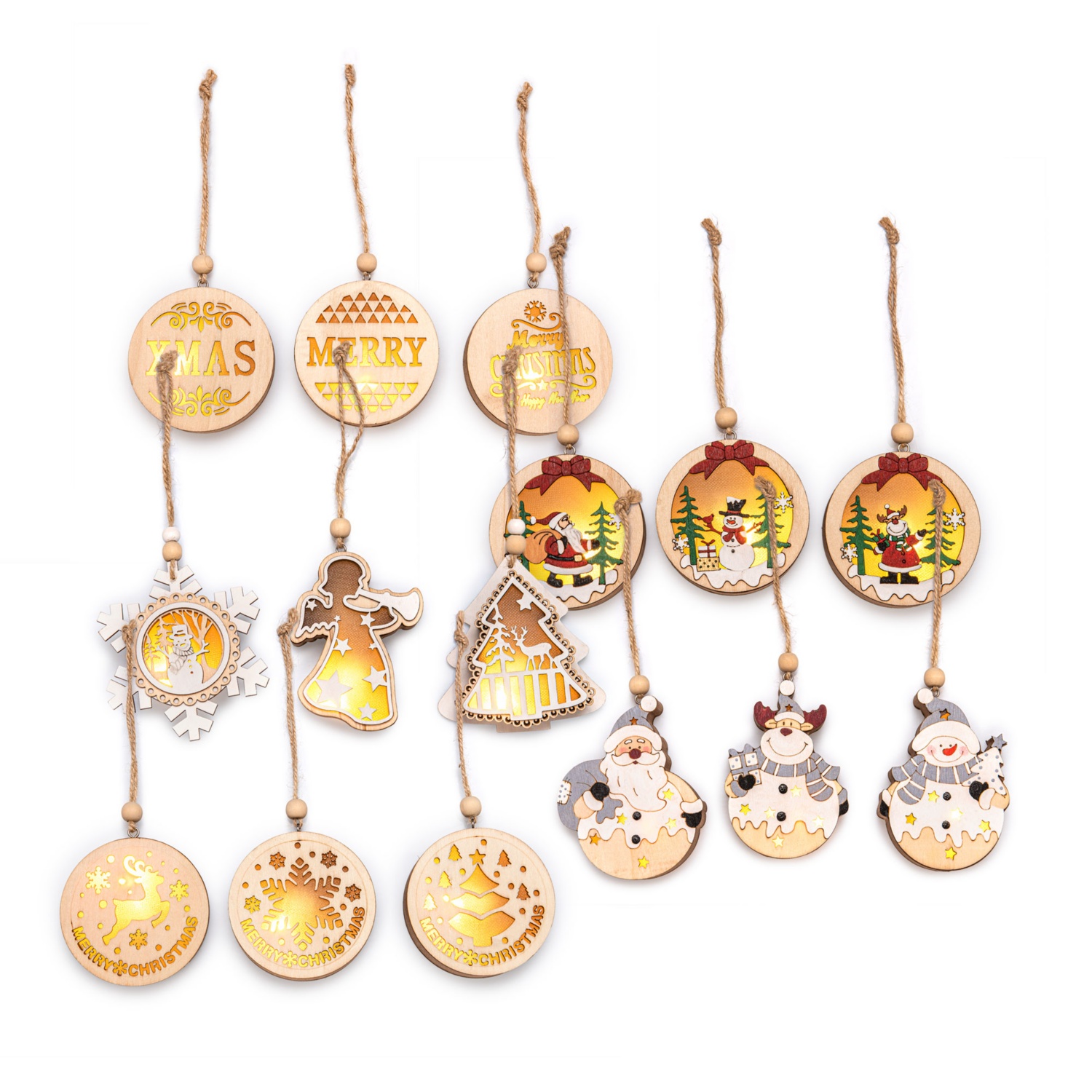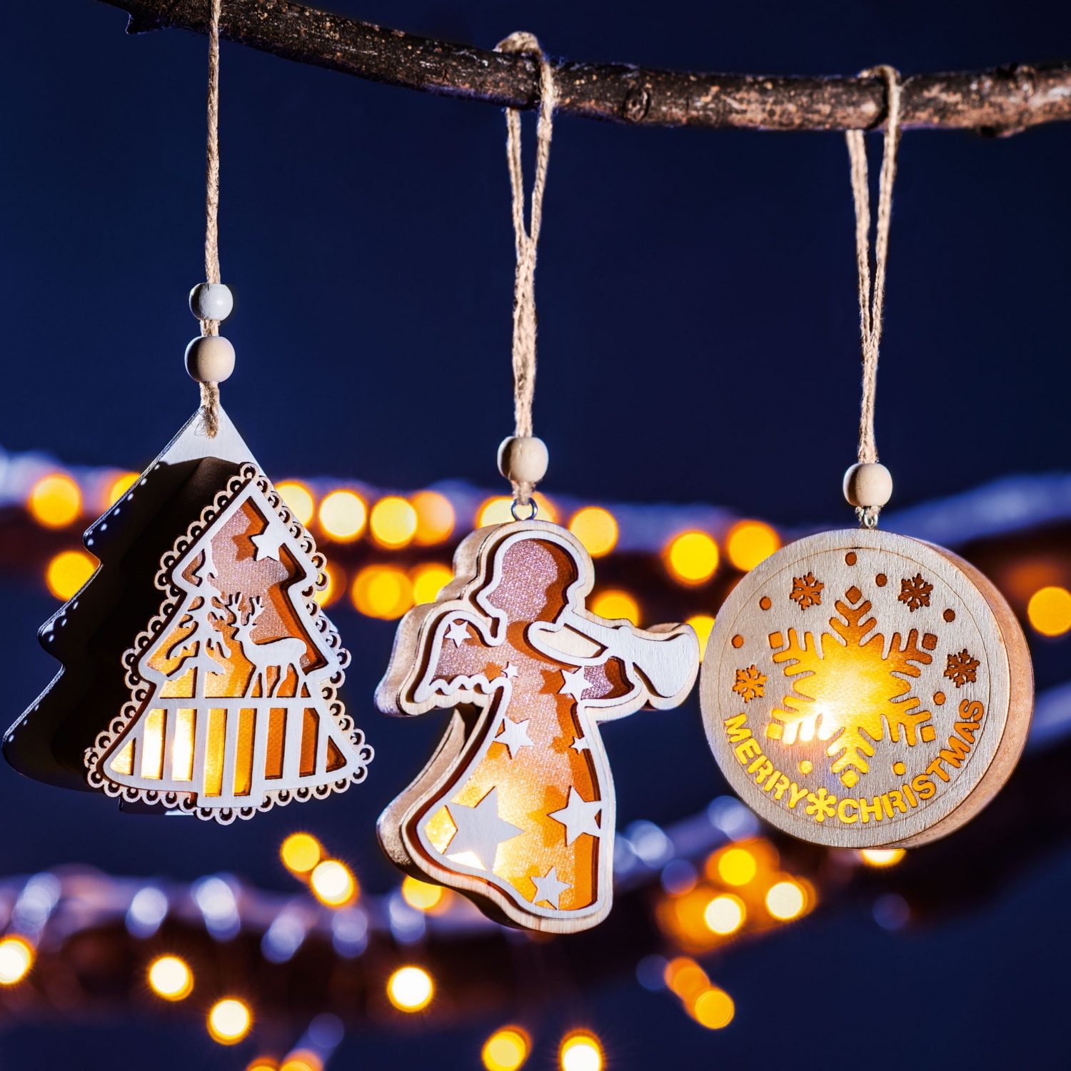 Weihnachtliche LED-Holzanhänger
