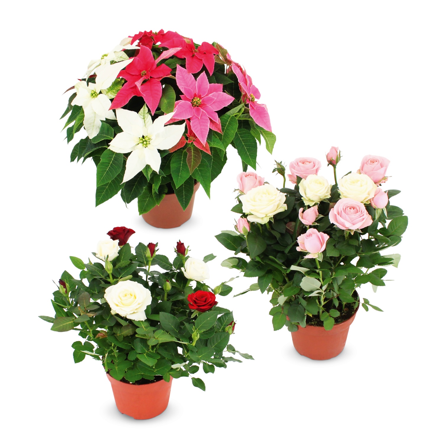 im 14-cm-Topf, Höhe inkl. Topf: Weihnachtsstern 28 - 32 cm, Rosen 30 - 35 cm