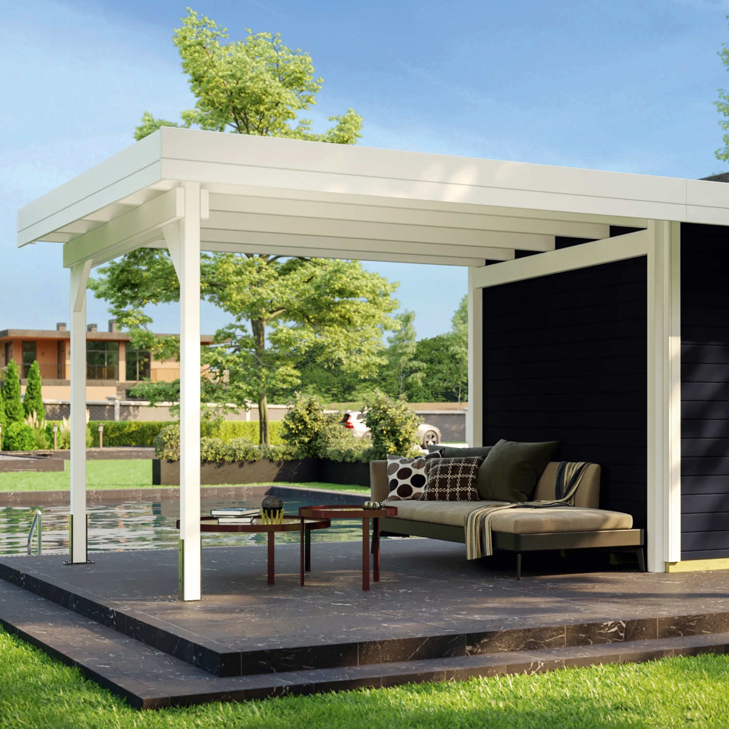 • mit großem Loungeanbau 295 x 240 cm
