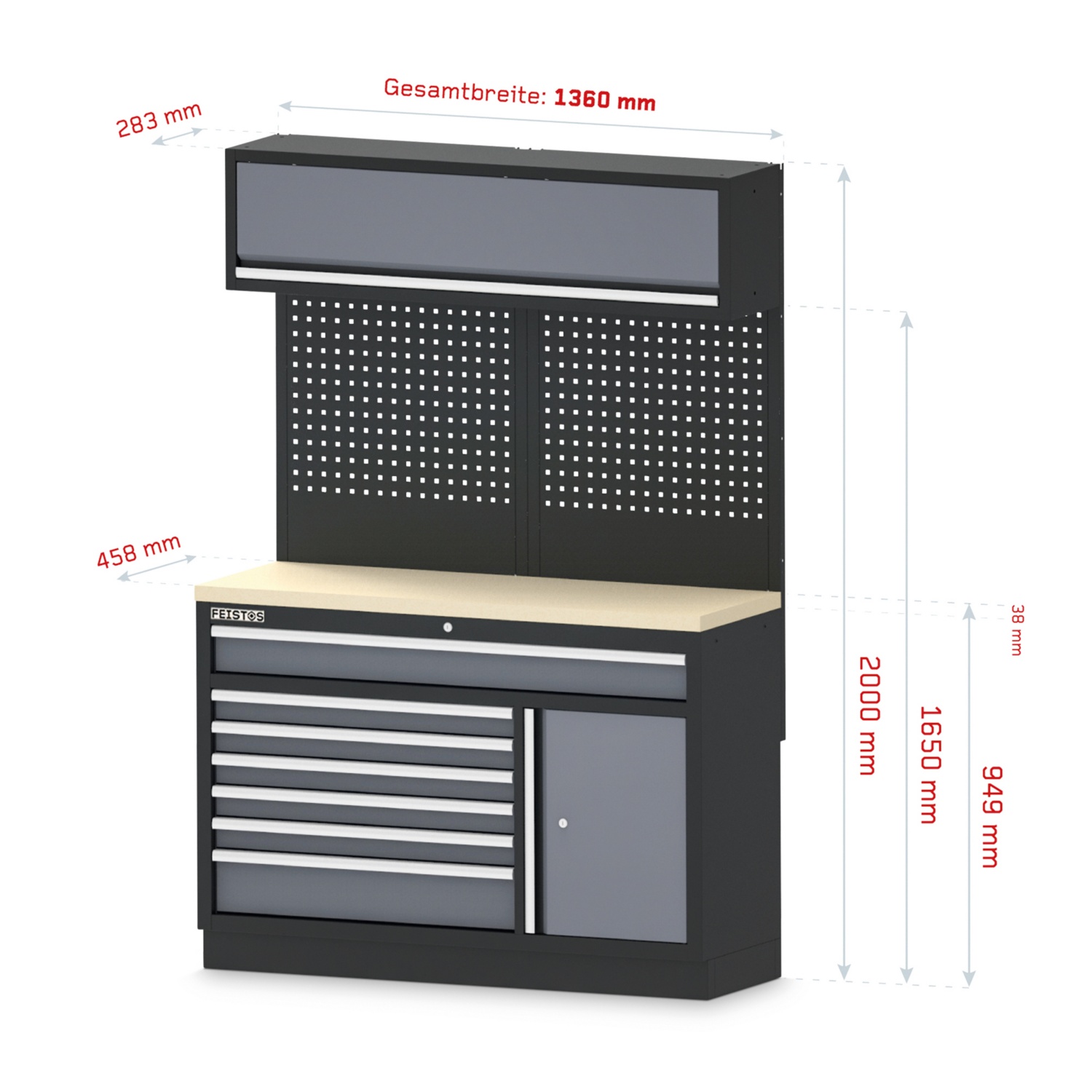 Massive Materialien, modernes Design, maximaler Stauraum!Die modulare Werkstatteinrichtung Apollo von FEISTOS ist das Herzstück deiner Werkstatt, egal auf welchem Niveau du schraubst und bastelst.