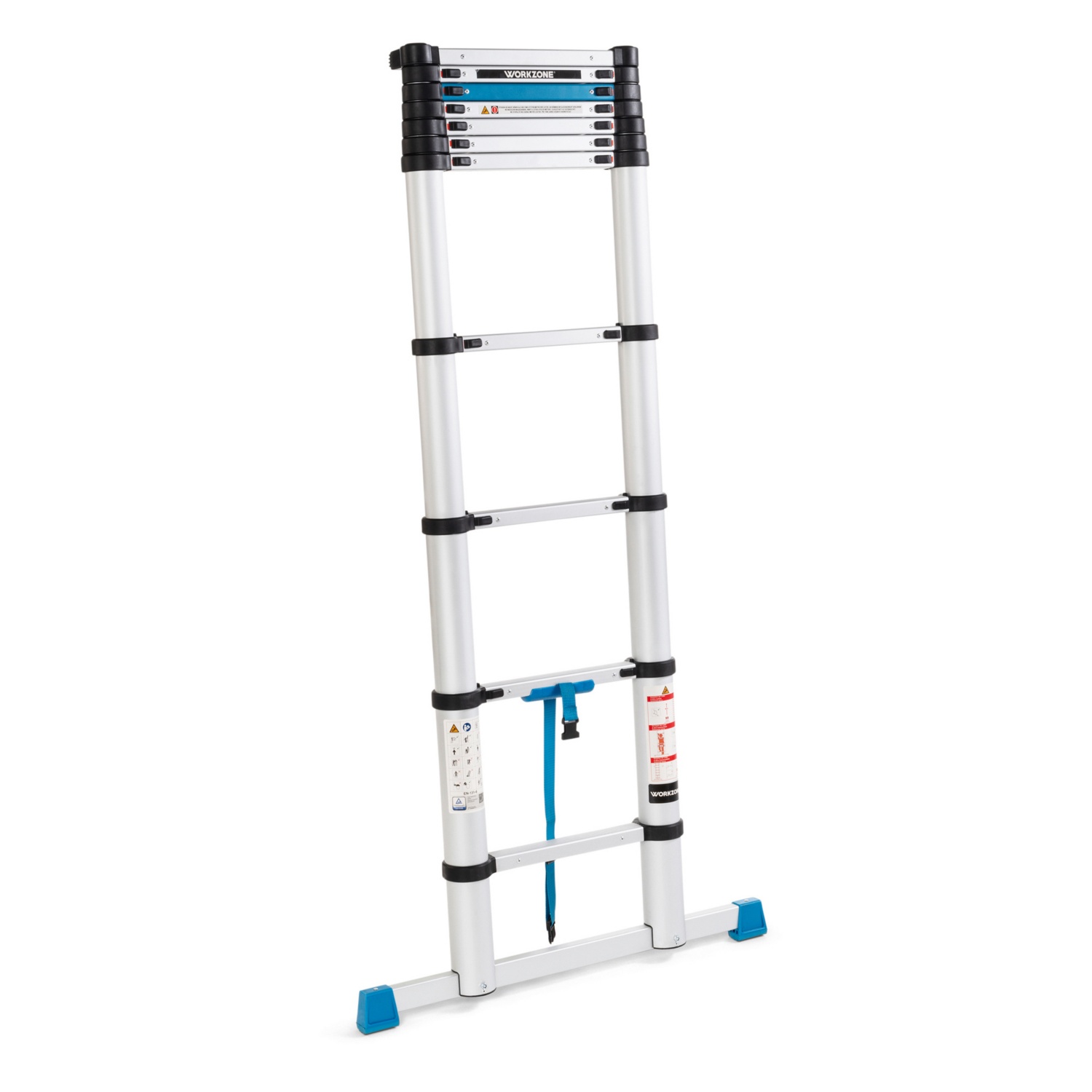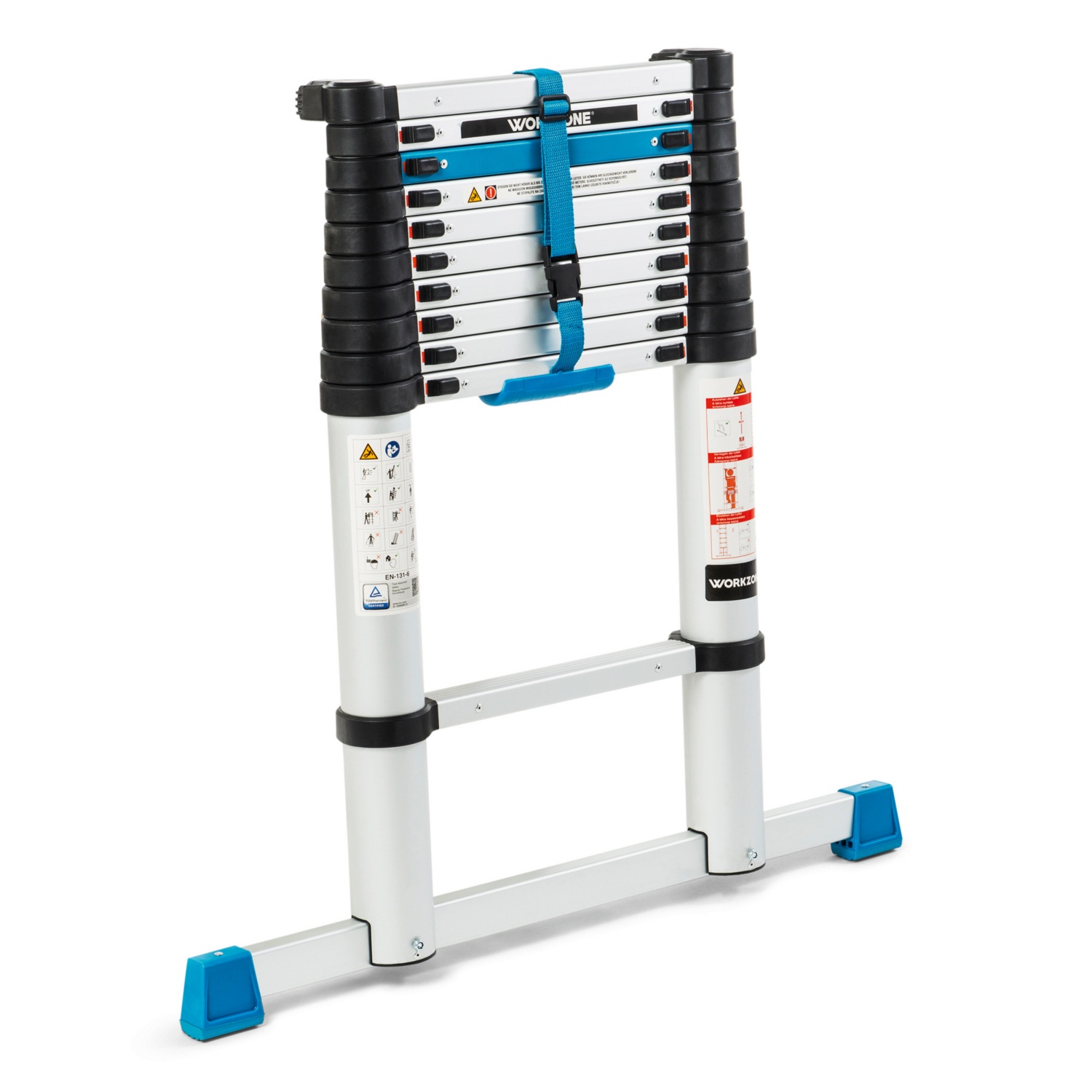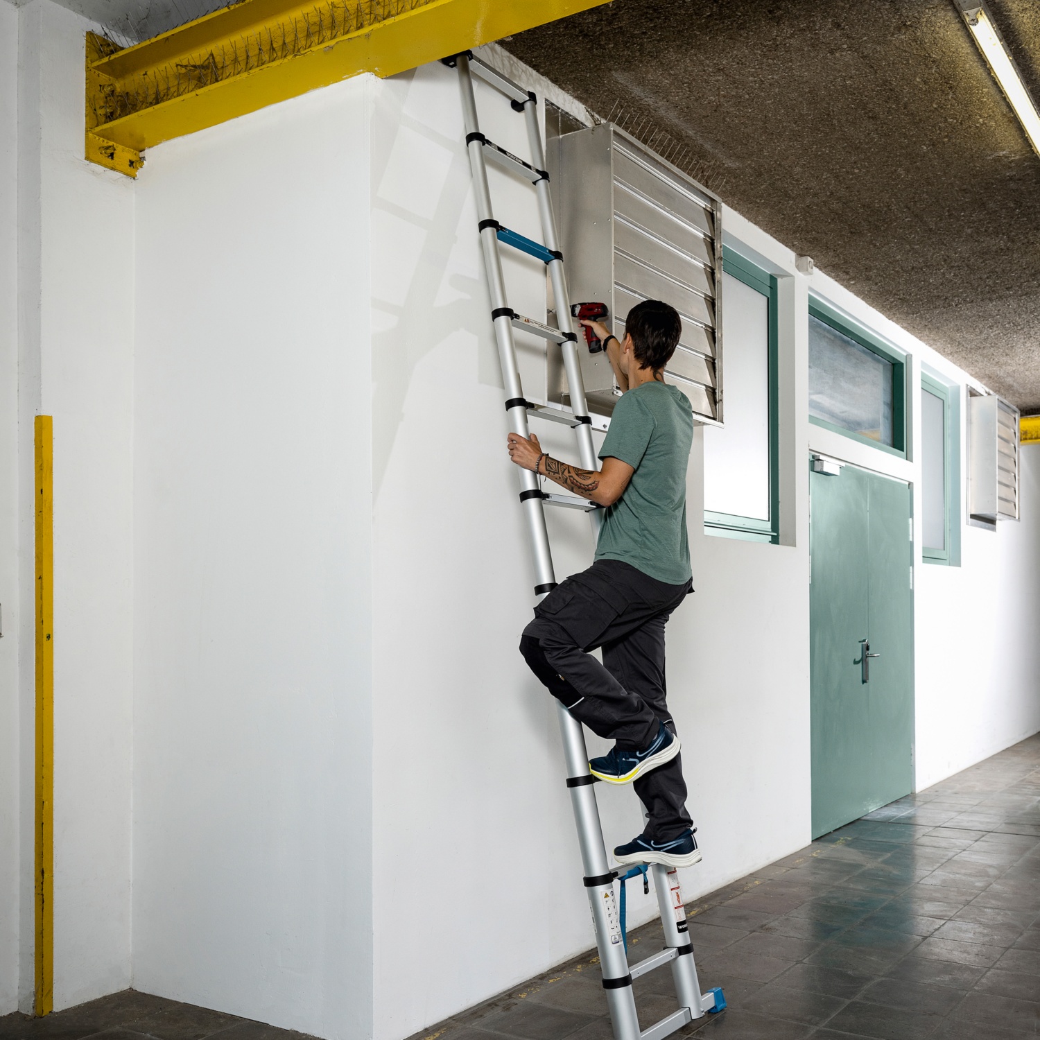 Die 3,27 m lange Teleskopleiter Workzone ist eine zuverlässige und robuste Lösung für alle, die sicher in der Höhe arbeiten müssen. Sie wurde entwickelt, um strenge Produktsicherheitsstandards zu erfüllen, und ist eine der wenigen Teleskopleitern auf dem Markt, bei der der Schutz des Benutzers an erster Stelle steht. Diese aus hochwertigem Aluminium gefertigte Leiter kombiniert Stabilität mit einem kompakten, leichten Design, das den Transport und die Lagerung erleichtert. Ein wichtiges Sicherheitsmerkmal ist die integrierte Winkelanzeige, die dafür sorgt, dass die Leiter immer in einem sicheren Arbeitswinkel zwischen 65° und 75° eingesetzt wird. Wenn die Anzeige eine vollständige grüne Markierung anzeigt, ist die Leiter korrekt positioniert. Wenn oben oder unten auf dem Indikator Rot sichtbar ist, ist der Winkel unsicher und sollte angepasst werden. Dieser Indikator ermöglicht es, schnell und einfach den richtigen Winkel zu erreichen und das Risiko von Ausrutschen, Kippen oder Instabilität während des Gebrauchs zu verringern. Um die Sicherheit des Benutzers weiter zu erhöhen, ist die Leiter mit einem luftgesteuerten Abseilsystem ausgestattet. Beim Einfahren verlangsamen Luftpuffer die kollabierenden Segmente für ein sanftes und kontrolliertes Gleiten, wodurch das Risiko von eingeklemmten Fingern oder plötzlichen Stürzen minimiert wird. Jede Sprosse verfügt über ein rutschfestes Profil, das auch bei voller Ausdehnung für eine sichere und stabile Standfläche sorgt. Die Worzkone Teleskopleiter ist wirklich erstaunlich.