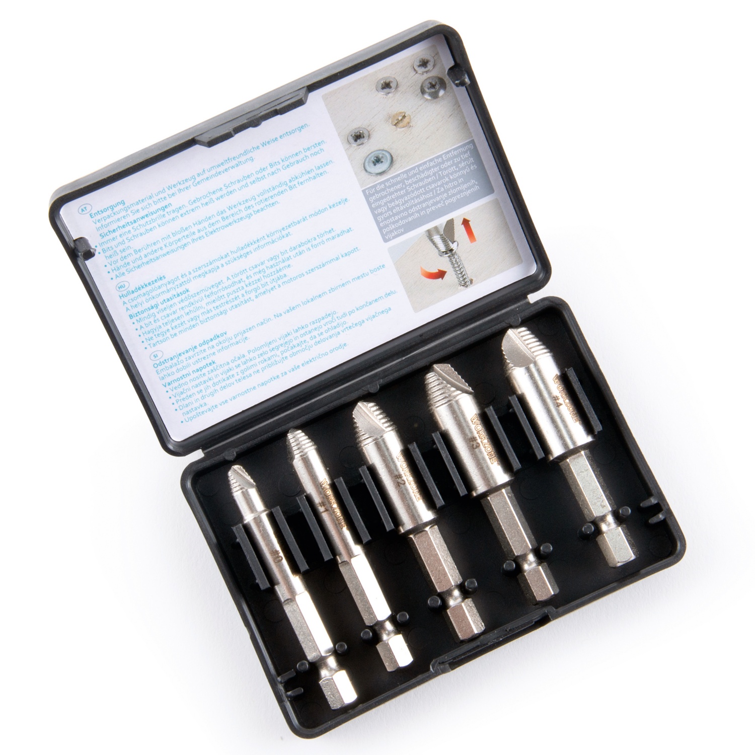 • Set bestehend aus 5 Schraubenentfernern in den Größen 0, 1, 2, 3 und 4