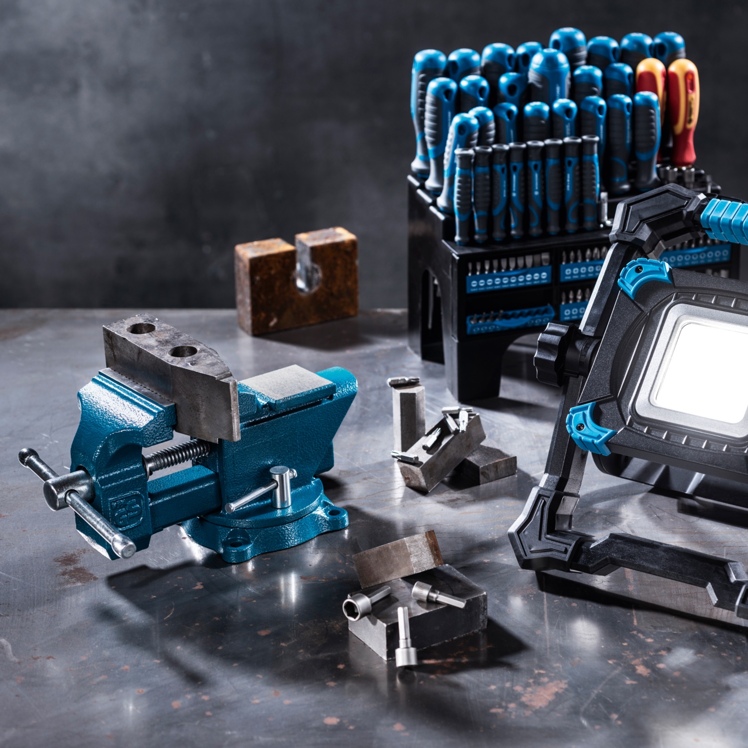 Schraubstock kann auf Tisch oder Werkbank geschraubt werden
