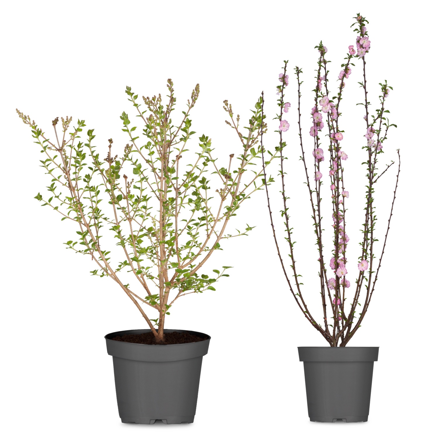 im 19-cm-Topf, Höhe inkl. Topf: 60 - 80 cm (je nach Sorte), in den Sorten Mandelbäumchen, Zierkirsche und Zwergflieder