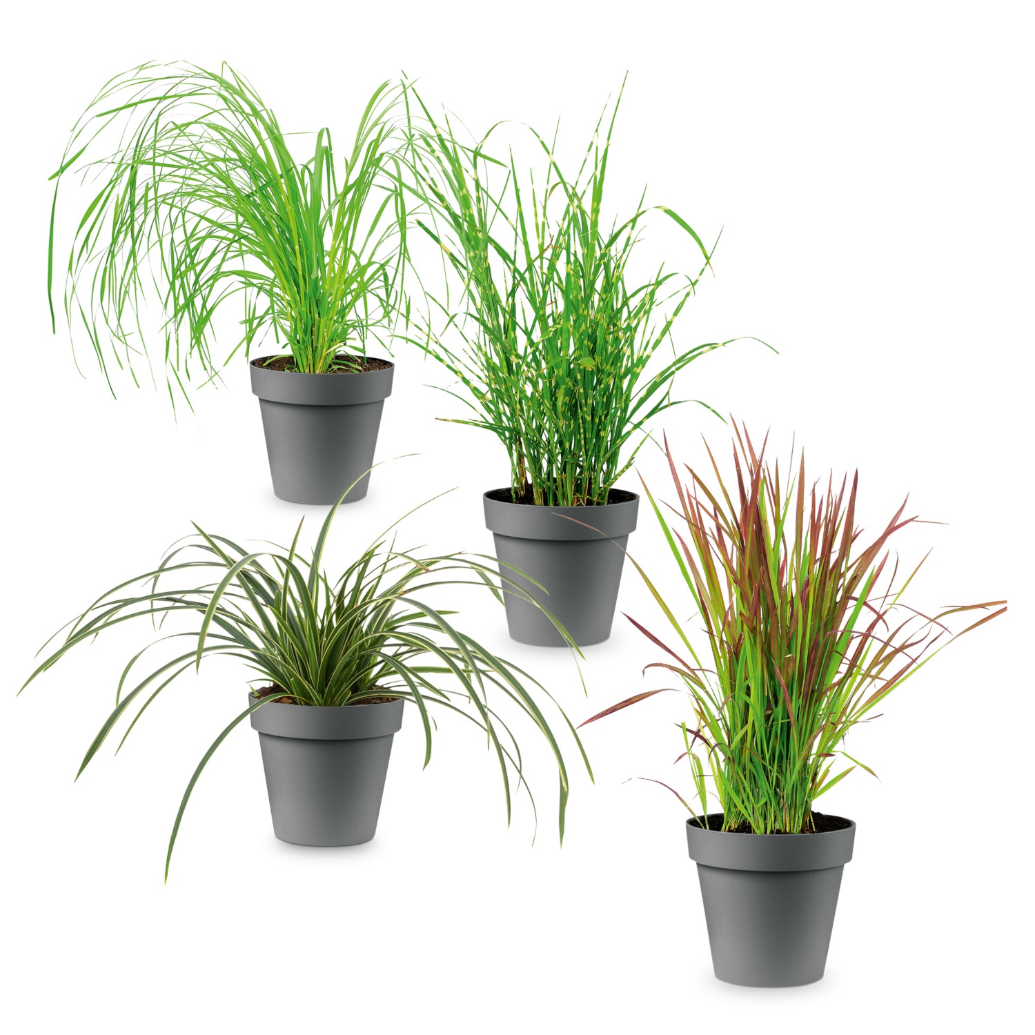 im 3-l-Topf, Höhe inkl. Topf: mind. 40 - 100 cm (je nach Sorte), verschiedene Sorten wie Chinaschilf, Japanisches Blutgras, Pampasgras etc., winterhart