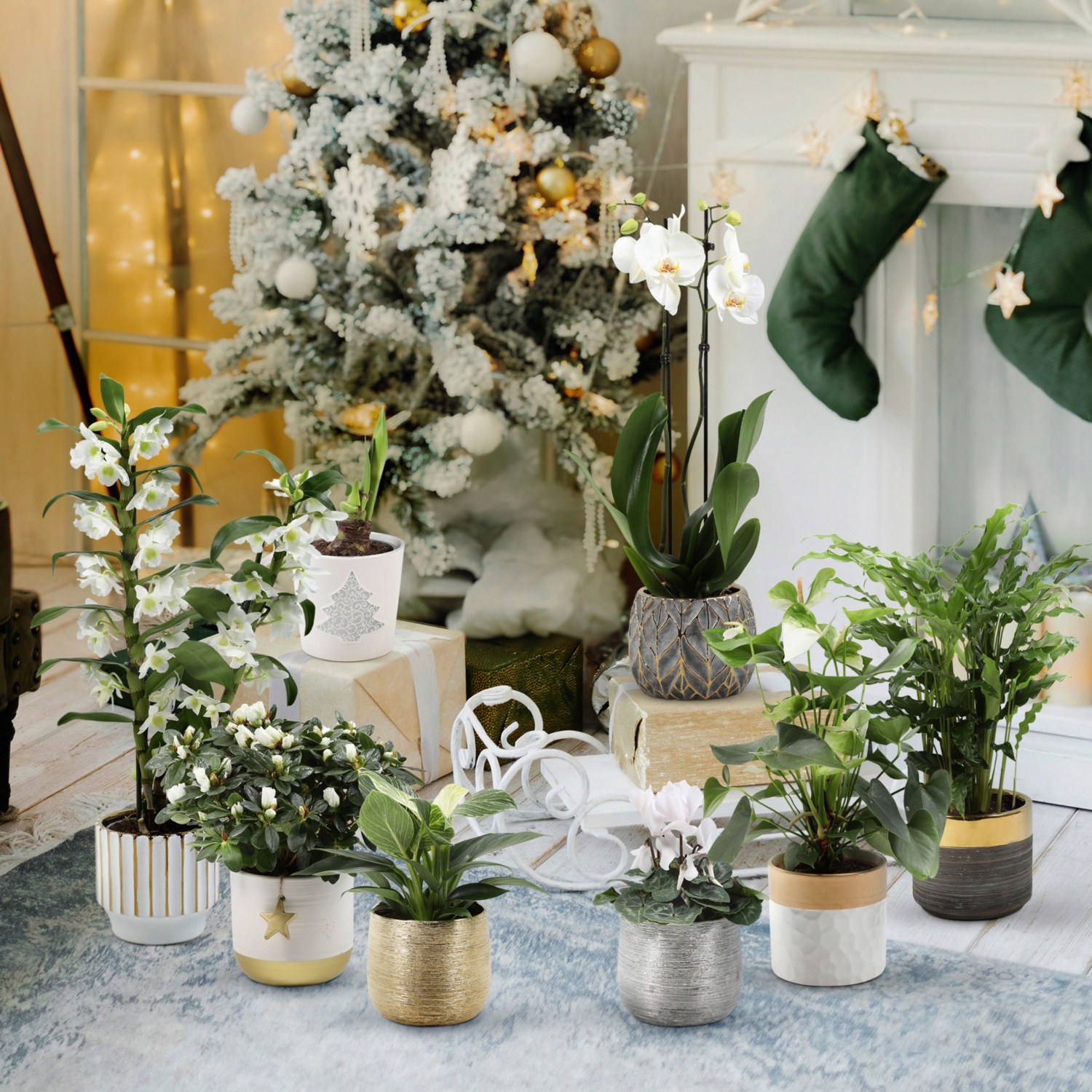 im 13,5-cm-Keramikübertopf in weihnachtlichem Design, Höhe inkl. Topf: ca. 36 - 45 cm, stilvolle Blattschmuckpflanze Calathea