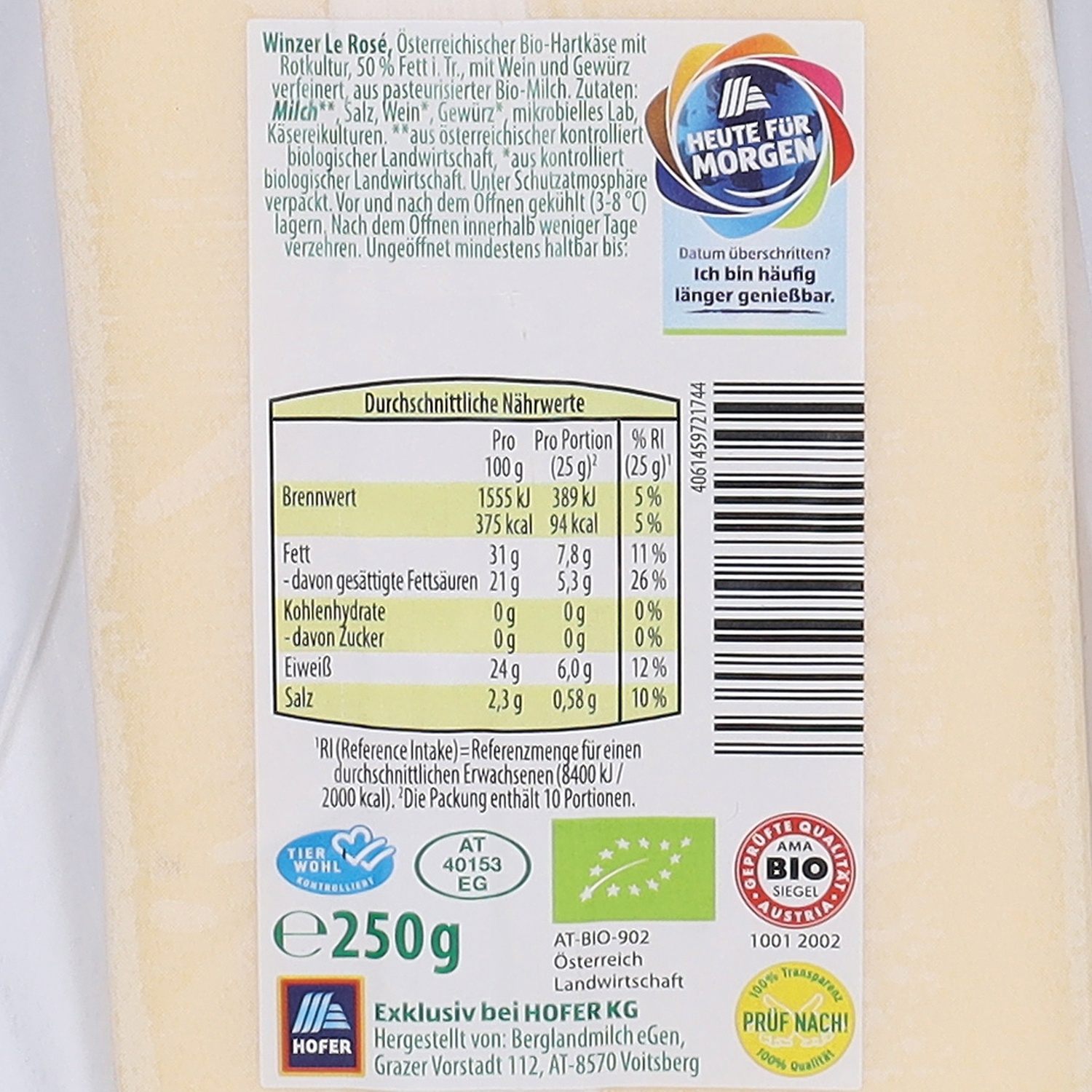 Abgabe nur in Haushaltsmengen und solange der Vorrat reicht. Preise inkl. Steuern und exkl. Flascheneinsatz (Pfand). Alle Artikel ohne Dekoration. Die Abbildungen verstehen sich als Serviervorschläge bzw. Symbolfotos. Die „statt“-Preise waren unsere bisher gültigen Verkaufspreise. Bei Preissenkungen ist die Angabe der %-Senkung kaufmännisch gerundet. Wir führen unterschiedliche Verpackungen. In unseren Filialen wird jeweils nur eine Verpackungsart angeboten. Bitte beachten Sie, dass vereinzelte Filialen ein abweichendes Sortiments- und Aktionsartikelangebot führen. Diese sind auf hofer.at/filialen zu finden sowie vor Ort entsprechend gekennzeichnet. Technische und optische Änderungen sowie Satz- und Druckfehler vorbehalten.