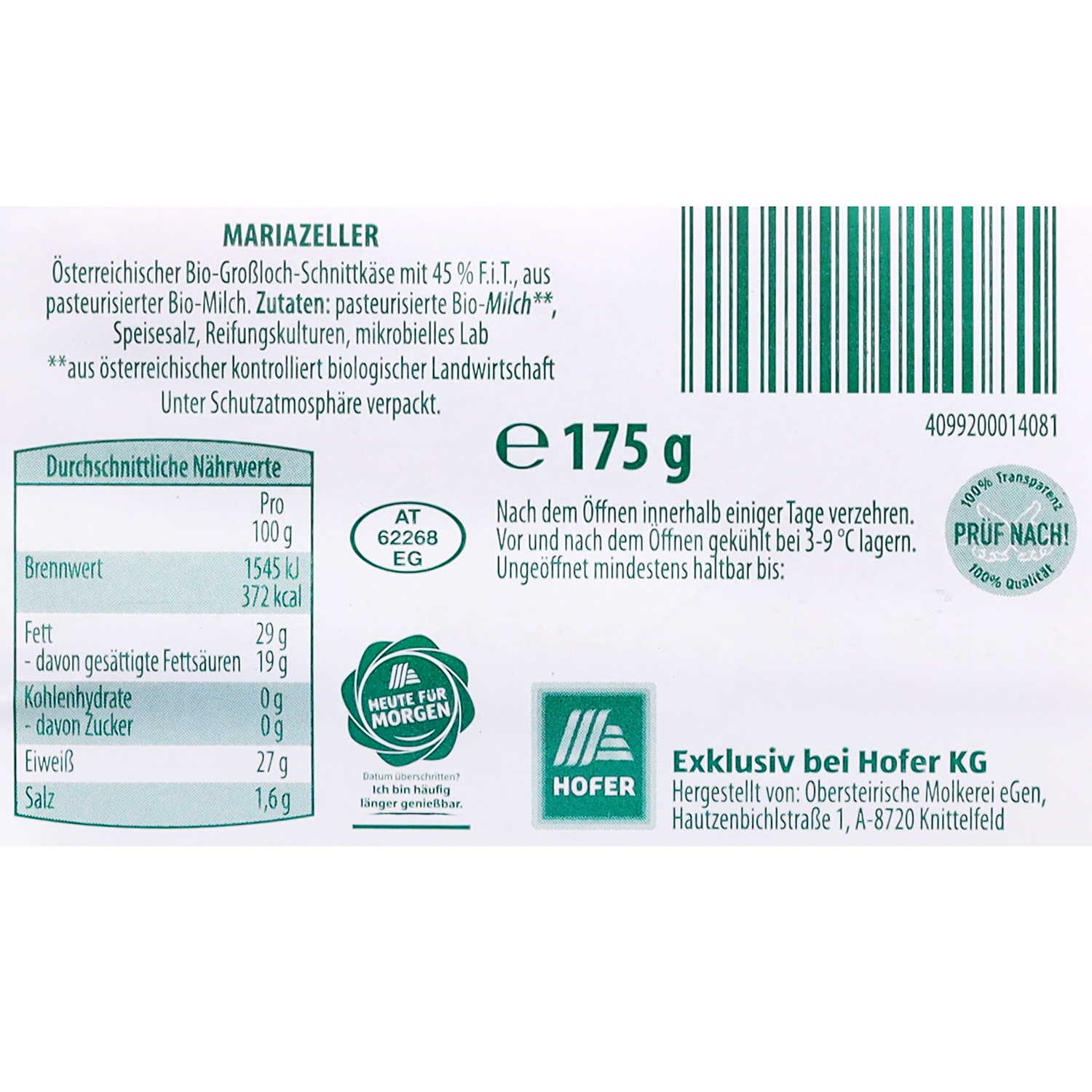 ZURÜCK ZUM URSPRUNG BIO-Bergbauern Käse in Scheiben, Mariazeller