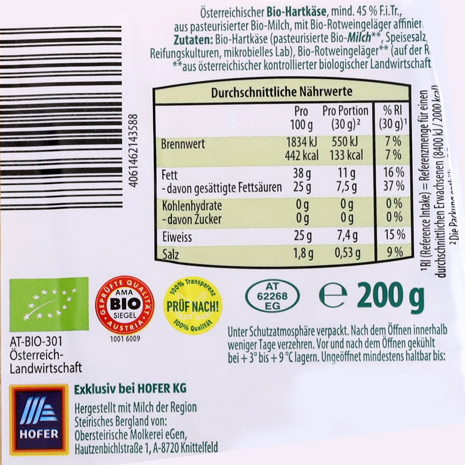 mindestens 10 Monate gereift, mit Milch der Region Steirisches Bergland