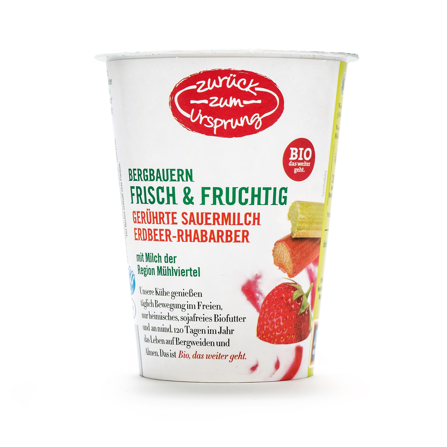 ZURÜCK ZUM URSPRUNG BIO-Bergbauern-Sauermilchjoghurt, Erdbeer-Rhabarber