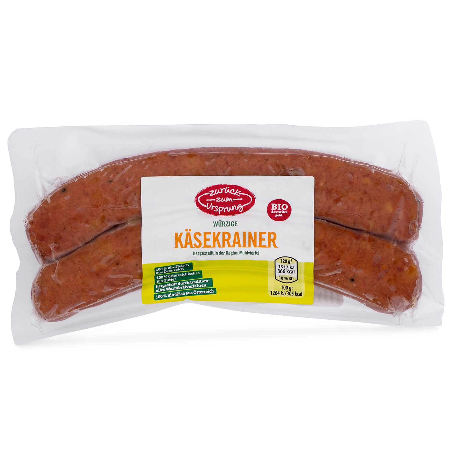 ZURÜCK ZUM URSPRUNG BIO-Würstel Sortiment, Käsekrainer