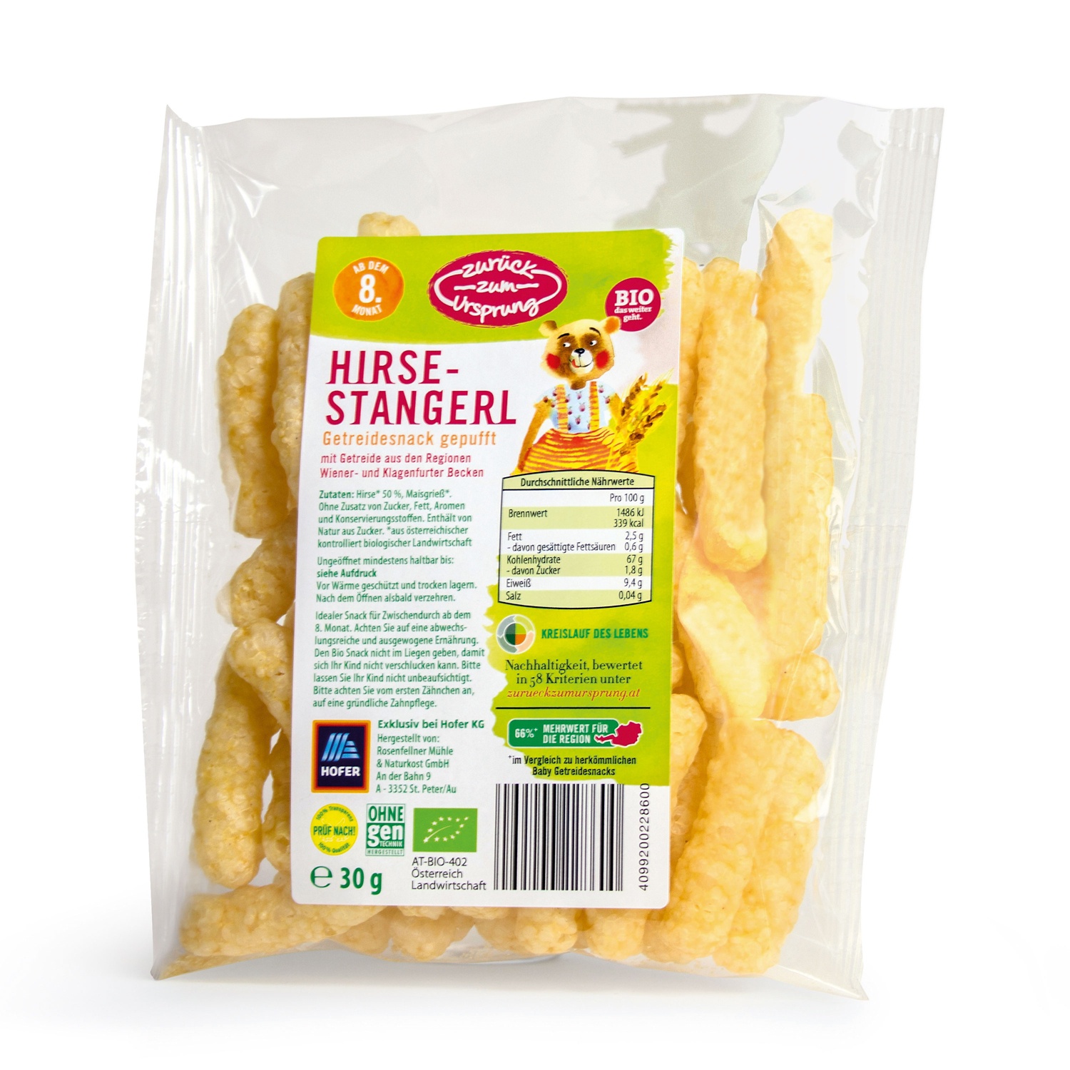 idealer Snack für Zwischendurch, ab dem 8. Monat, mit Getreide der Regionen Wiener und Klagenfurter Becken Bitte beachten Sie, dass diese Aktionsartikel, im Unterschied zu unserem dauerhaft erhältlichen Sortiment, nur in begrenzter Anzahl zur Verfügung stehen. Abgabe nur in Haushaltsmengen und solange der Vorrat reicht. Sollten bestimmte Produkte, trotz sorgfältiger Planung, aufgrund unerwartet hoher Nachfrage, am ersten Aktionstag ausverkauft sein, bitten wir um Verständnis. Bei Textilien und Schuhen sind teilweise Modelle nicht in allen Größen erhältlich. Beim Kauf eines Elektro-/Elektronikartikels können Sie Zug um Zug ein Gerät gleichwertiger Art unentgeltlich in unserer Filiale zurückgeben. Kein Flaschenpfand, inkl. sämtlicher Steuern. Alle Artikel ohne Dekoration. Die Abbildungen verstehen sich als Serviervorschläge bzw. Symbolfotos. Bei Preissenkungen ist die Angabe der %-Senkung kaufmännisch gerundet. Wir führen unterschiedliche Verpackungen. In unseren Filialen wird jeweils nur eine Verpackungsart angeboten. Bitte beachten Sie, dass vereinzelte Filialen ein abweichendes Sortiments- und Aktionsartikelangebot führen. Diese sind aufhofer.at/filialenzu finden sowie vor Ort entsprechend gekennzeichnet. Technische und optische Änderungen sowie Satz- und Druckfehler vorbehalten.