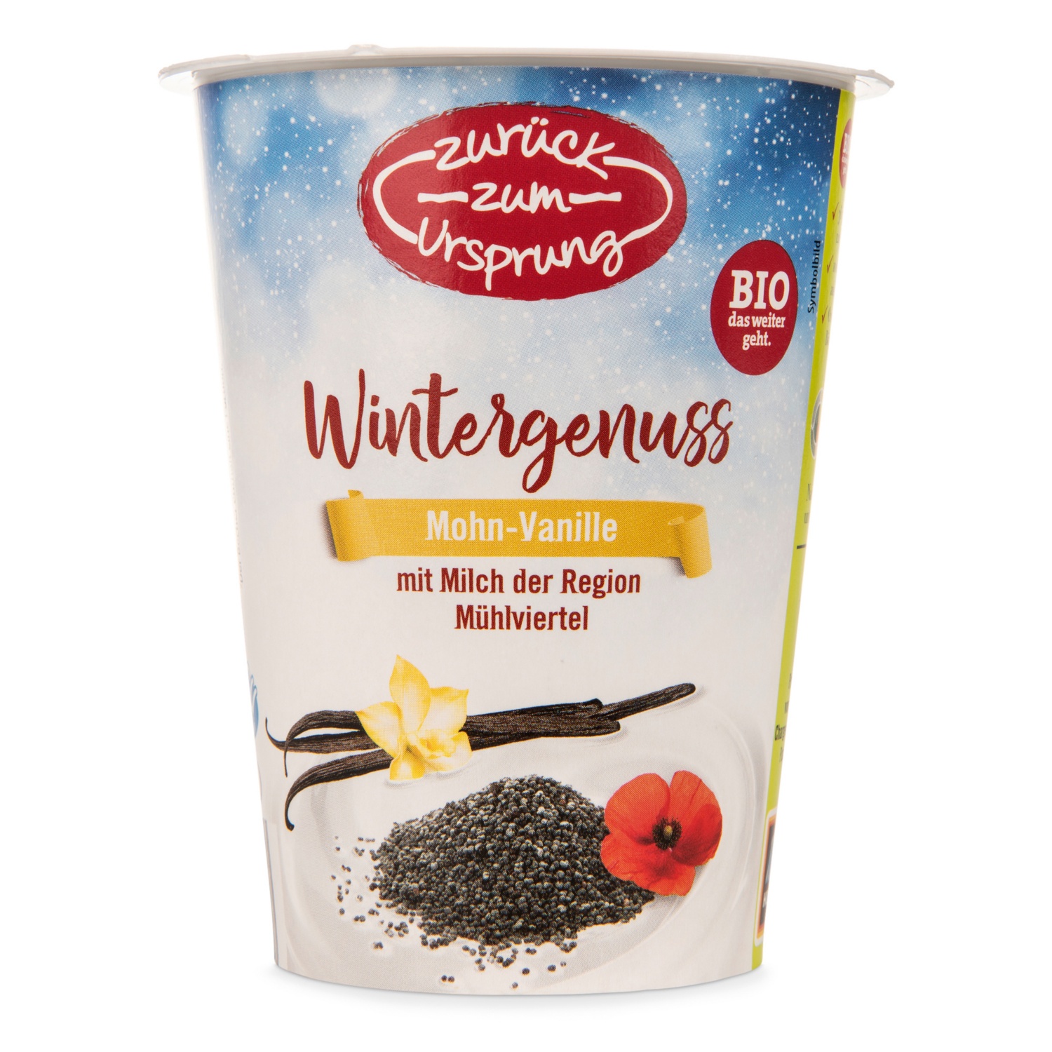 ZURÜCK ZUM URSPRUNG Saisonales Fruchtjoghurt, Mohn-Vanille
