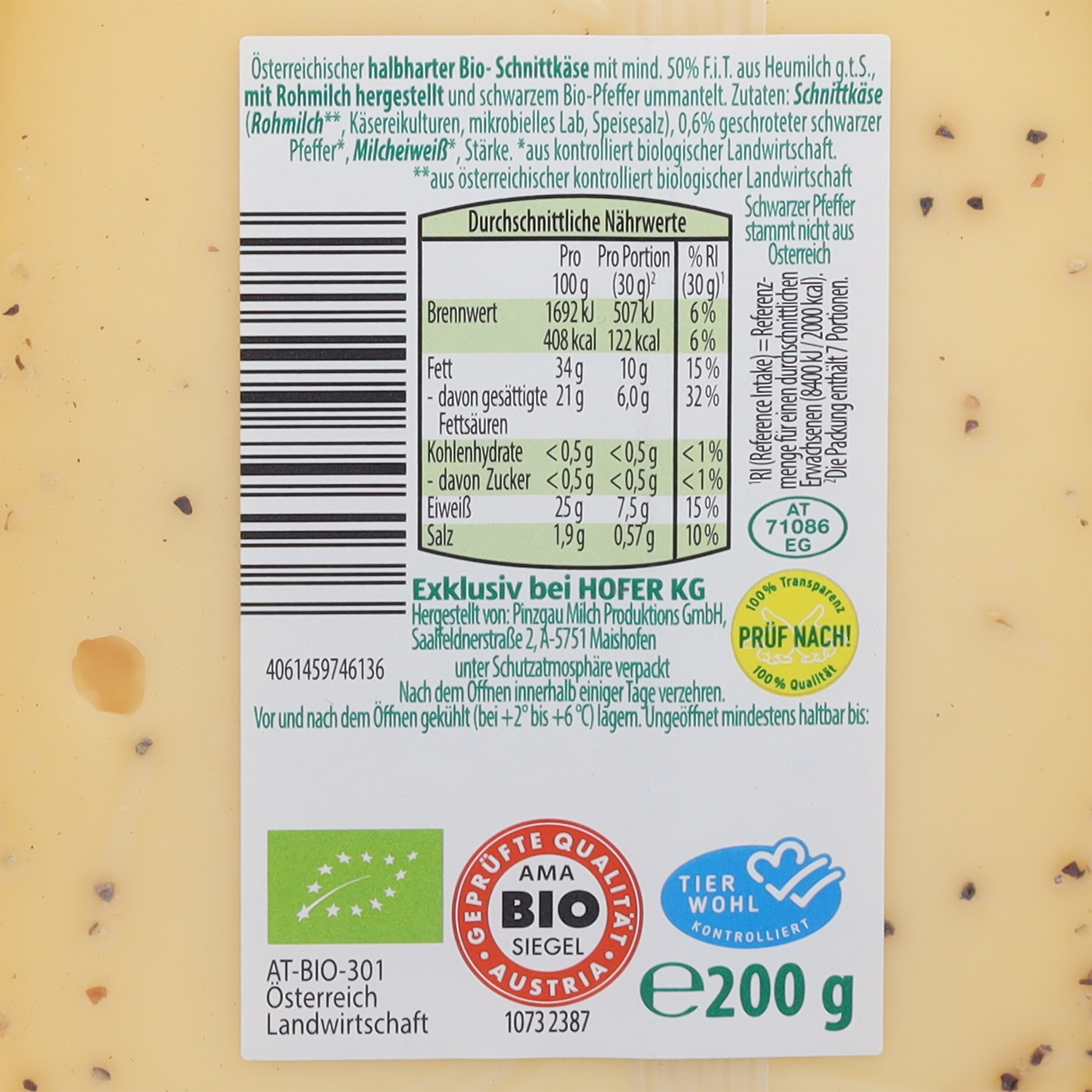 ZURÜCK ZUM URSPRUNG Sennkäse, Pfeffer