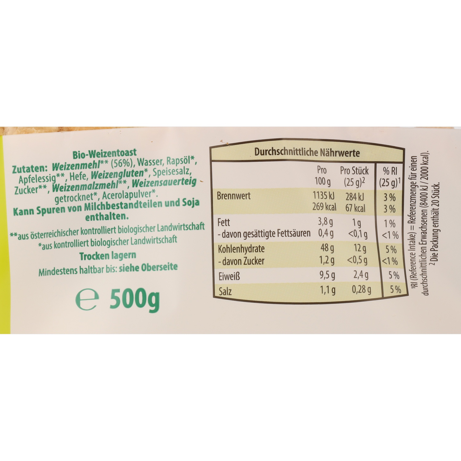 ZURÜCK ZUM URSPRUNG Toast Vegan, Weizen