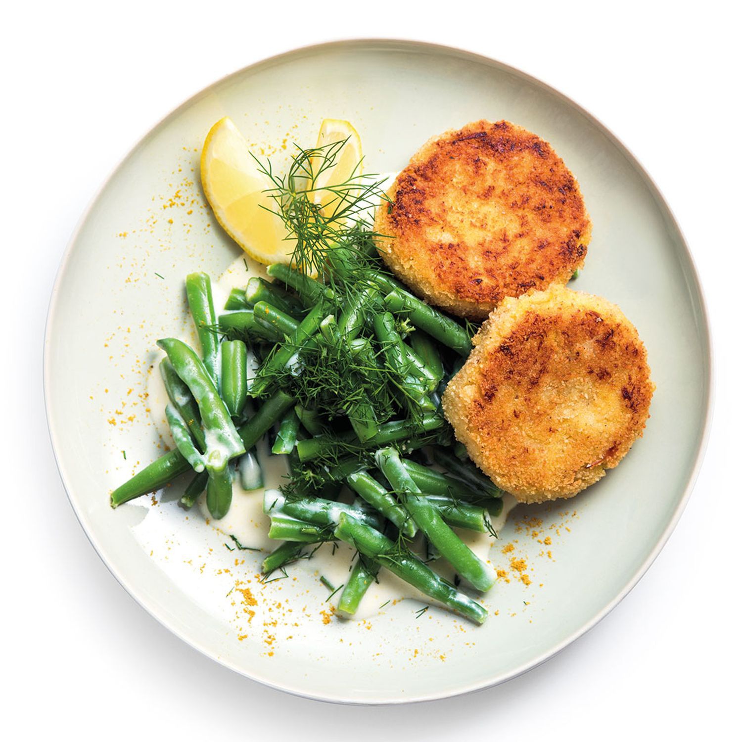 Kartoffel-Fischlaibchen mit Dill-Fisolen