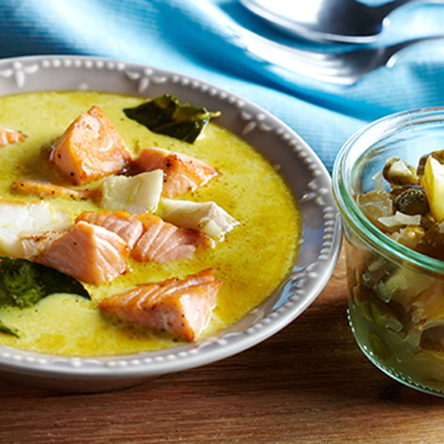 Curry-Fischtopf mit Gurkenrelish