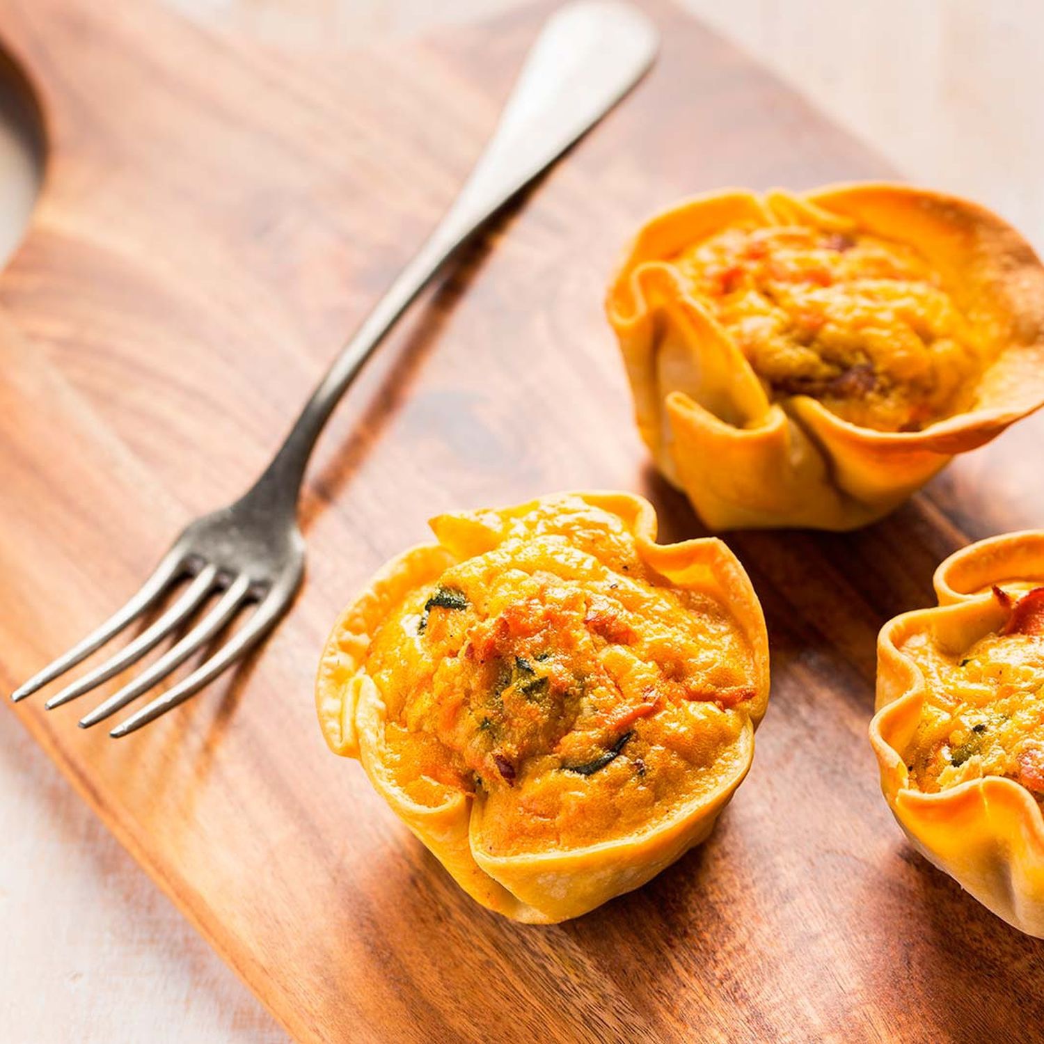 Fügen Sie ein Gemüse Ihrer Wahl zu den Karotten-Tartelettes hinzu! Sie können auch Muffinformen verwenden, wenn Sie keine Tartelette-Förmchen haben.