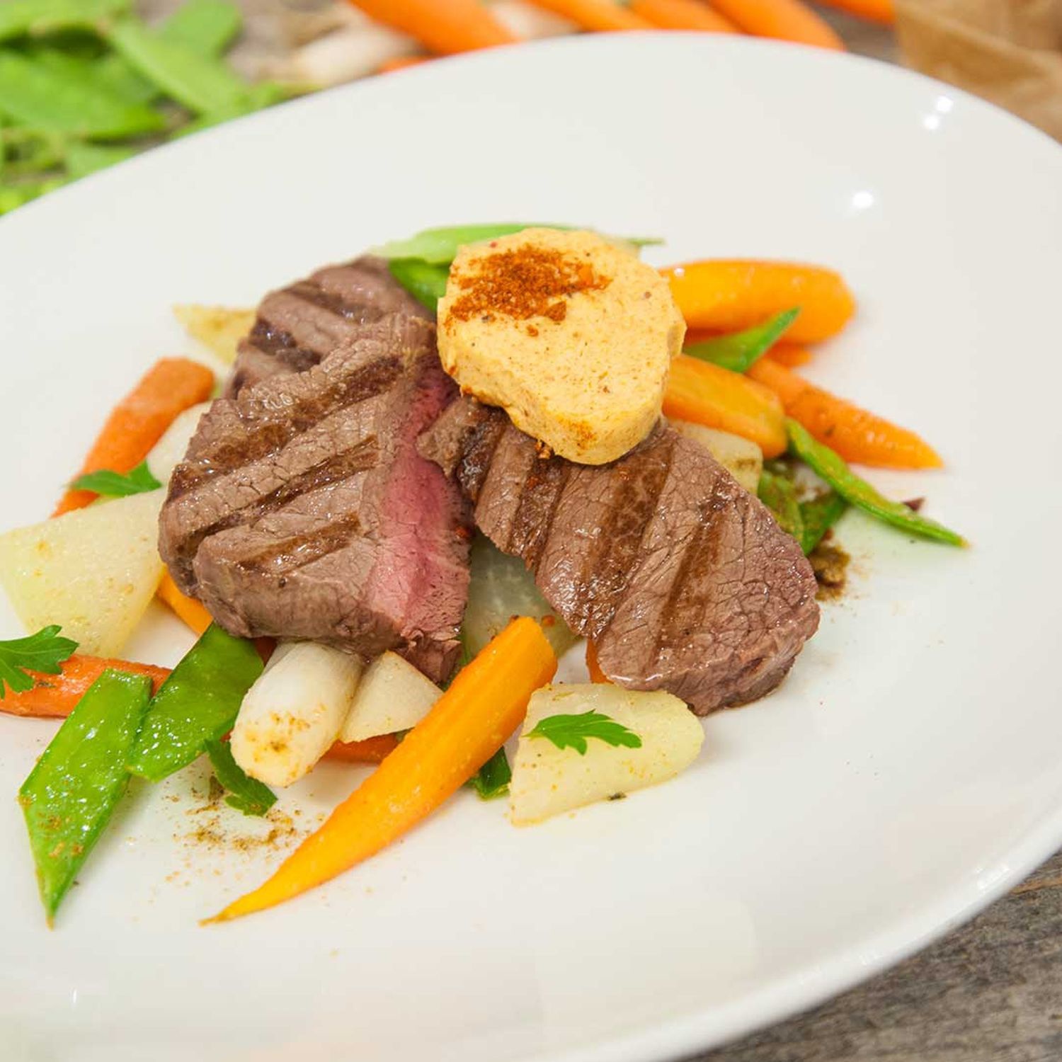 Hochgenuss für alle Fleischliebhaber. Probiere das leckere Rinderfiletsteak mit Grillgewürzbutter und Gemüse. Lass es dir schmecken!