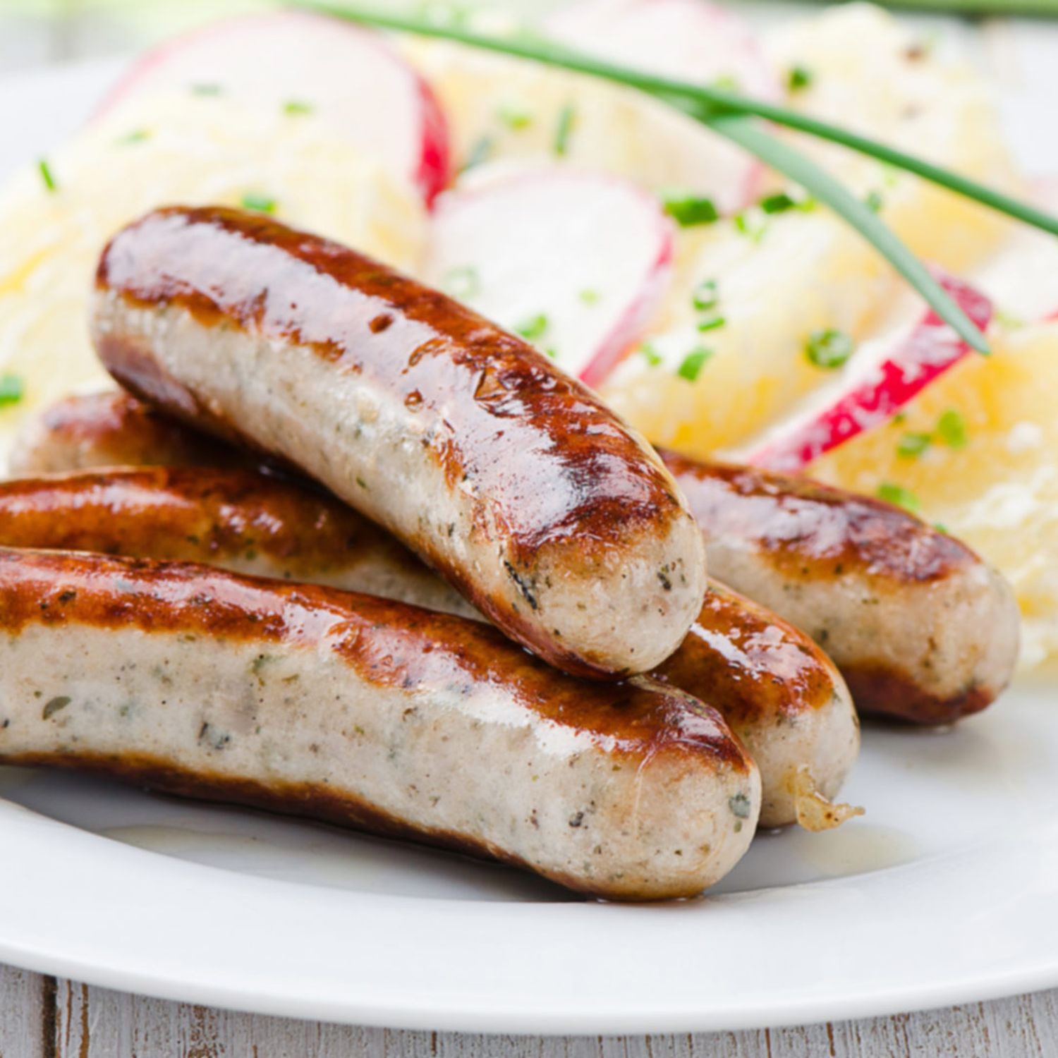 Schweinsbratwürstel mit würzigem Kartoffelsalat
