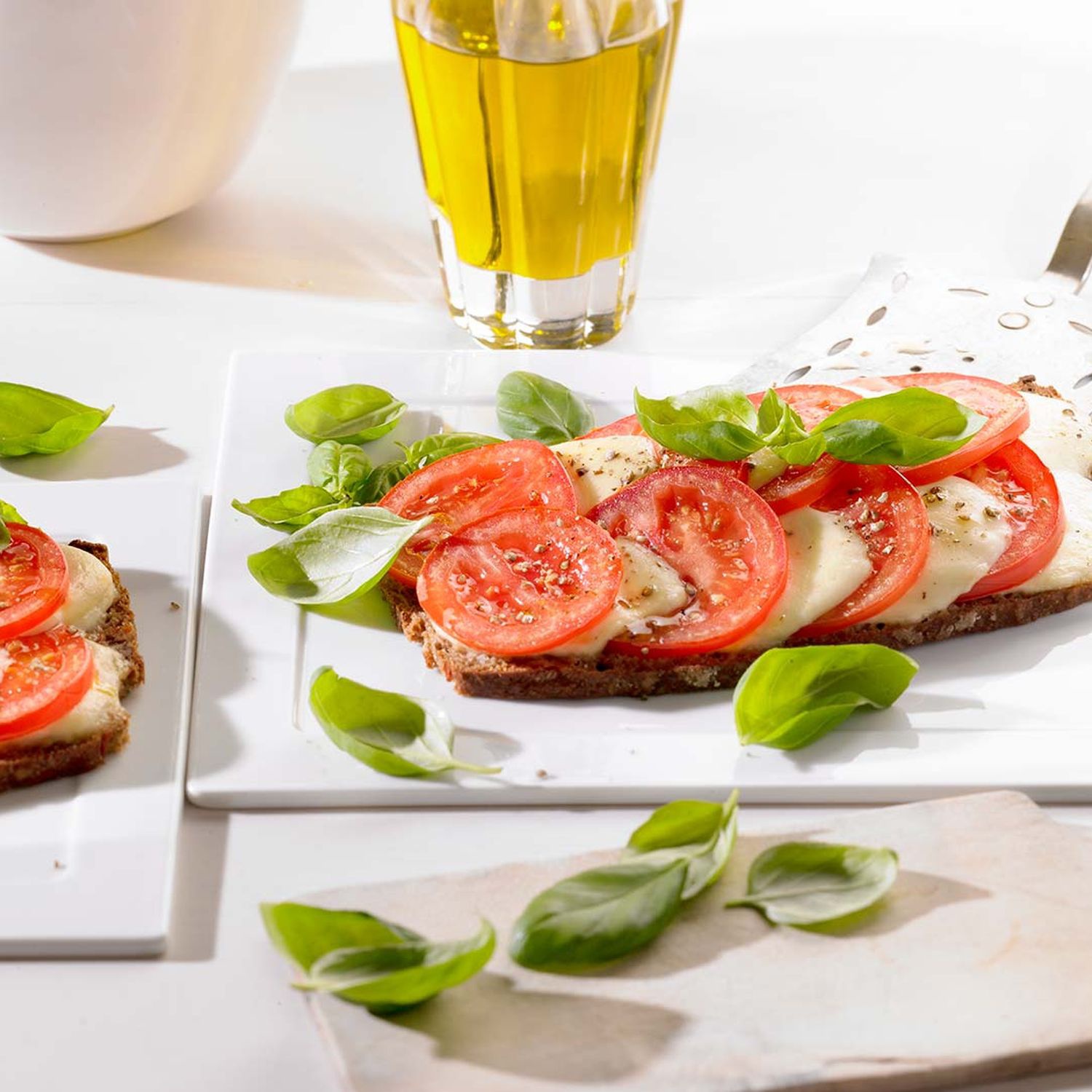 Ob als Vorspeise oder als Snack für zwischendurch- die überbackenen Caprese-Brote sind einfach und schnell zubereitet. Guten Appetit.