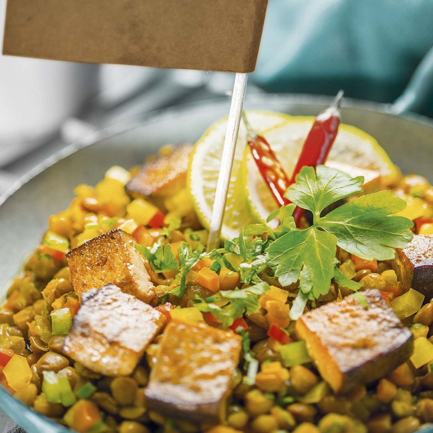 Curry-Linsen-Ragout mit geräuchertem Tofu