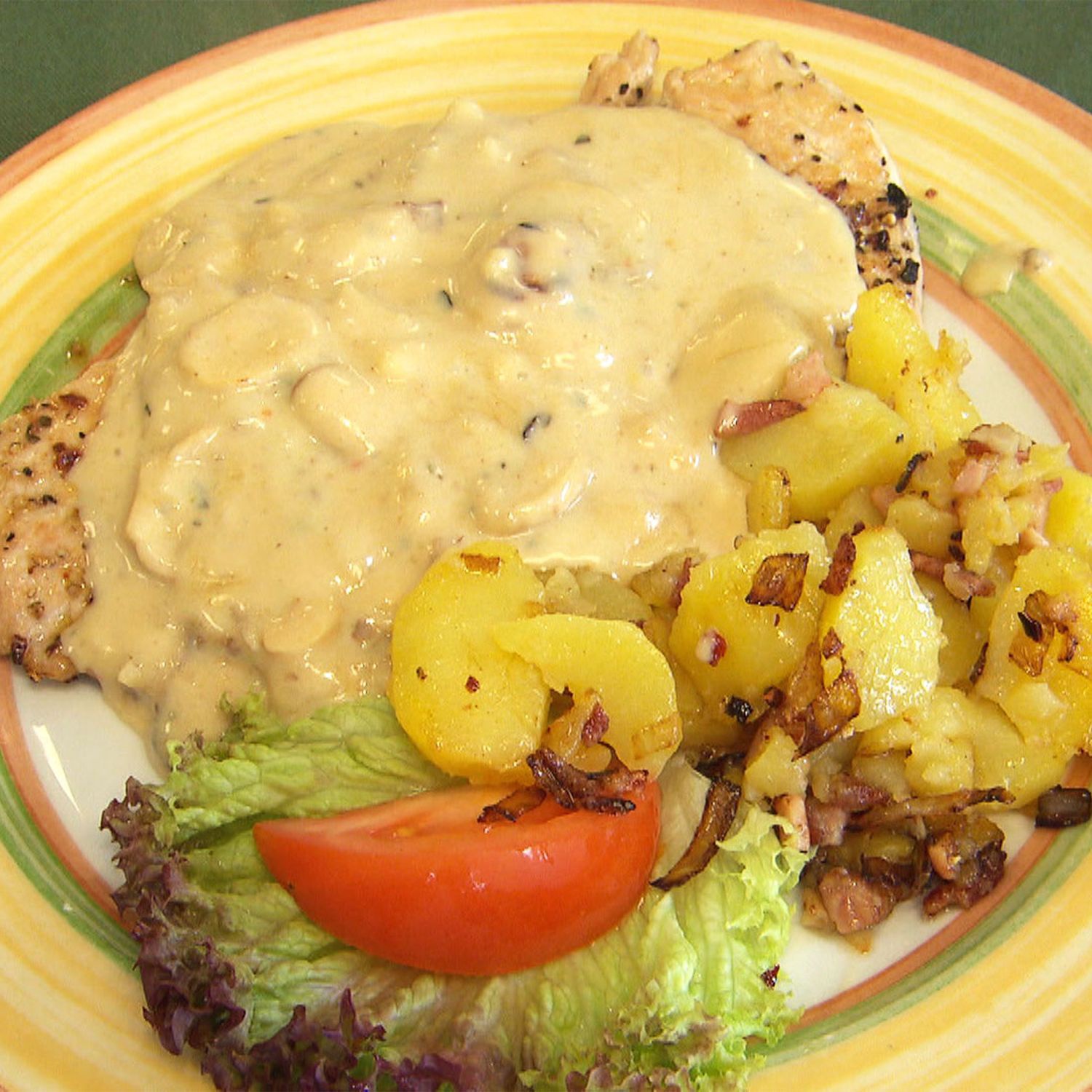 Schnitzel beidseitig dünn klopfen, salzen und pfeffern. In einer beschichteten Pfanne wenig Öl erhitzen und die Schnitzel von beiden Seiten her kurz anbraten. Hitze reduzieren und zugedeckt ca. 8 Minuten nachgaren lassen.
