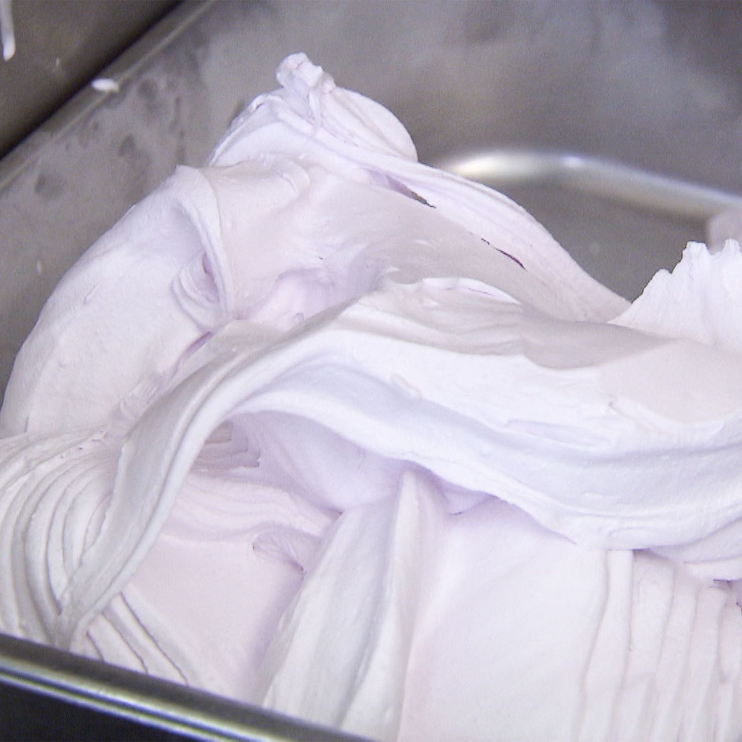Alle Zutaten miteinander verrühren und am Schluss den Veilchensirup dazugeben. Diesen Mix in den Kühlschrank stellen oder in einer Eismaschine rühren, bis eine schöne cremige Eismasse entsteht. Dekoriert wird das Eis mit frischen oder kandierten Veilchen.