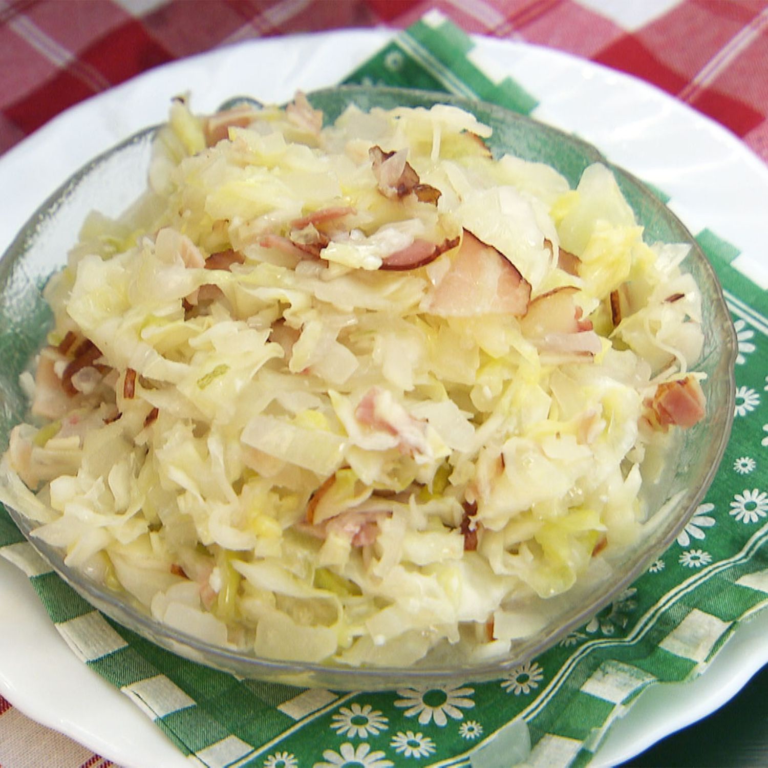 Den Krautsalat kann man auch warm genießen. Dafür einfach Speck und Zwiebel in Öl anrösten, den fertigen kalten Krautsalat unterheben und mit gepresstem Knoblauch verfeinern. Für den Krautsalat kann Flach- oder Spitzkraut verwendet werden.