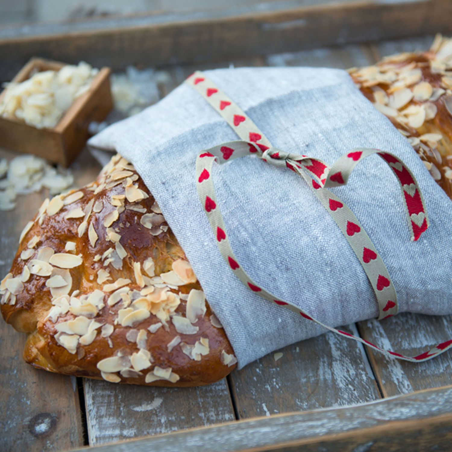 Den Striezel nach Belieben entweder mit Hagelzucker oder mit Mandelblättchen bestreuen.