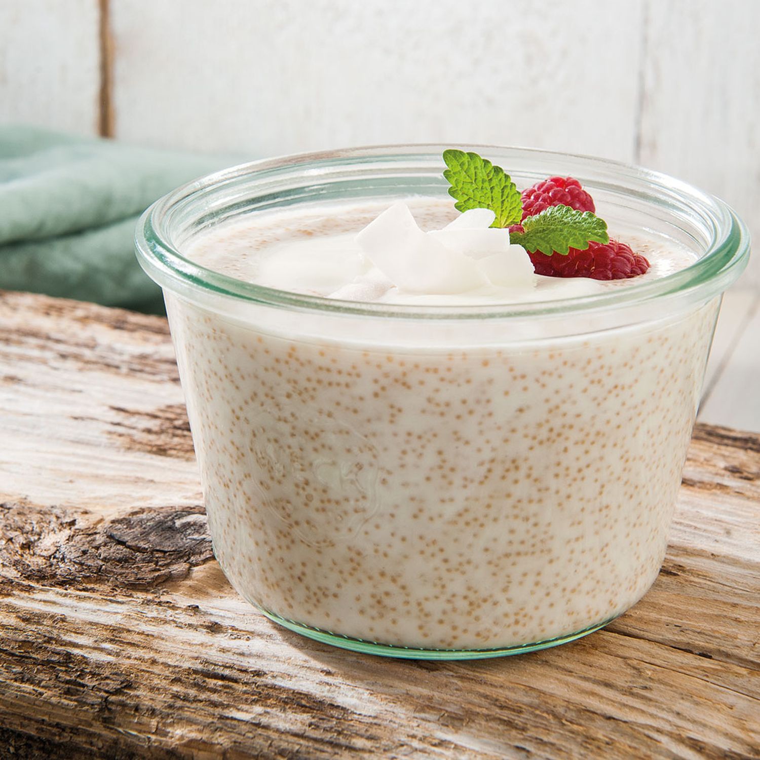 Joghurt unter die Masse heben und mit den Kokosraspeln garnieren.