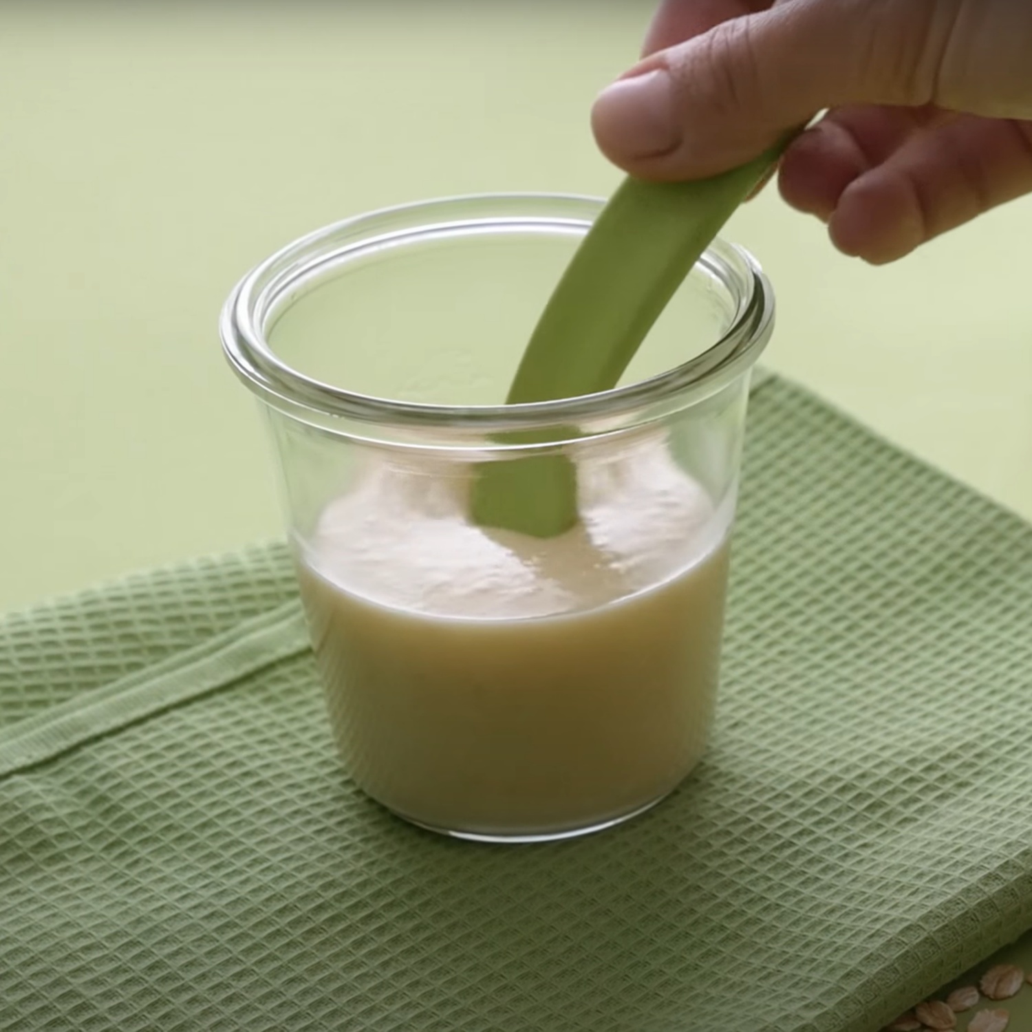 2 EL Haferflocken, 2 EL Apfelsaft und 1 EL Rapsöl hinzufügen.