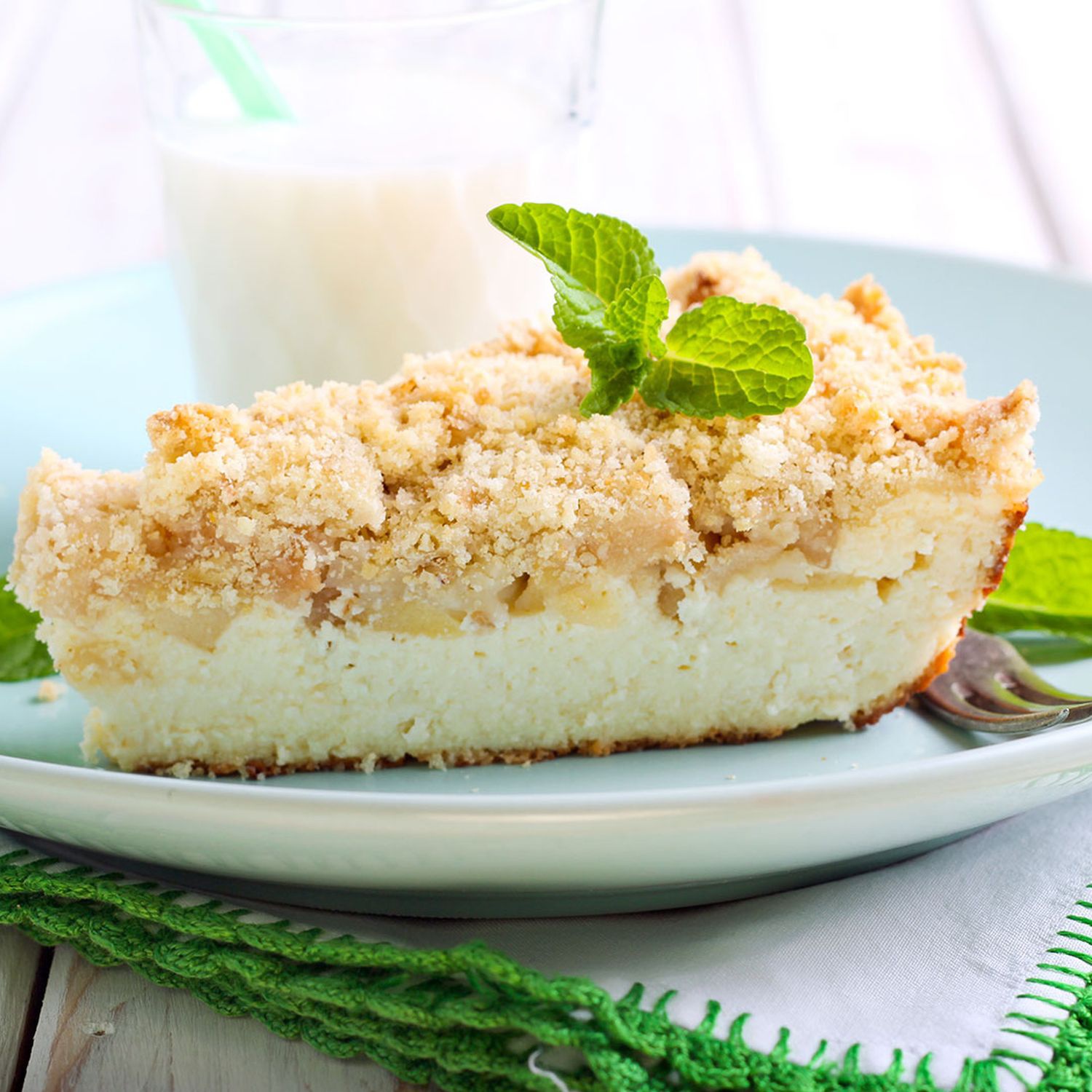 Probiere den Apfel-Käsekuchen mit Vanillestreusel. Mit der Schritt-für-Schritt-Anleitung lässt sich der Kuchen ganz einfach nachbacken.