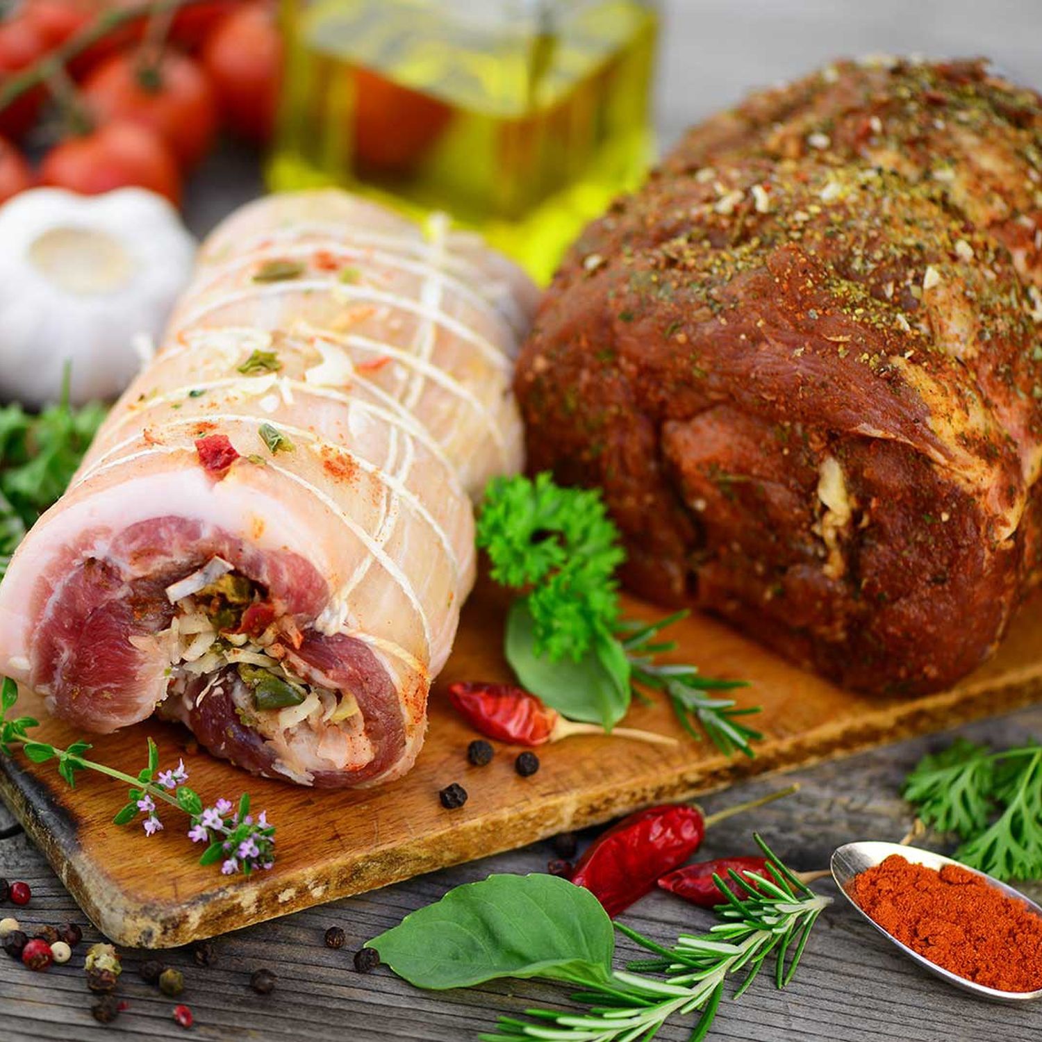 Bärlauch-Wildkräuter-Salat mit gefüllten Fleischrouladen