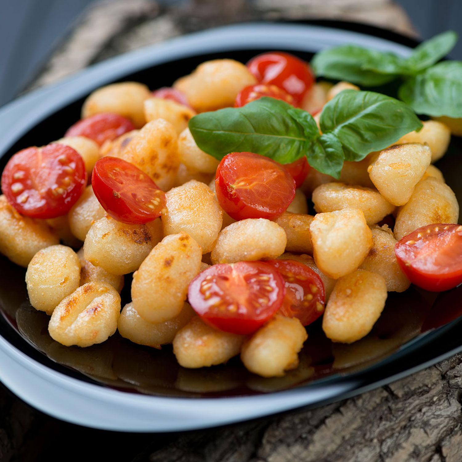 Basilikumgnocchi mit lauwarmem Tomatensalat
