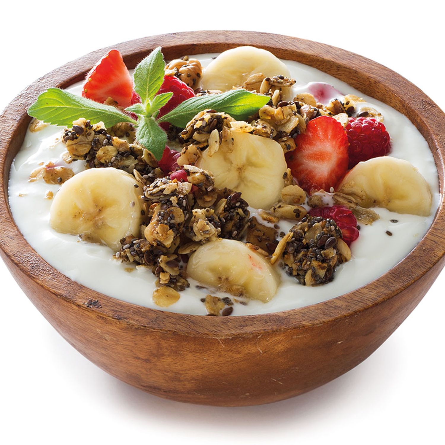 Auskühlen lassen und mit Joghurt, Honig und Früchten servieren.
