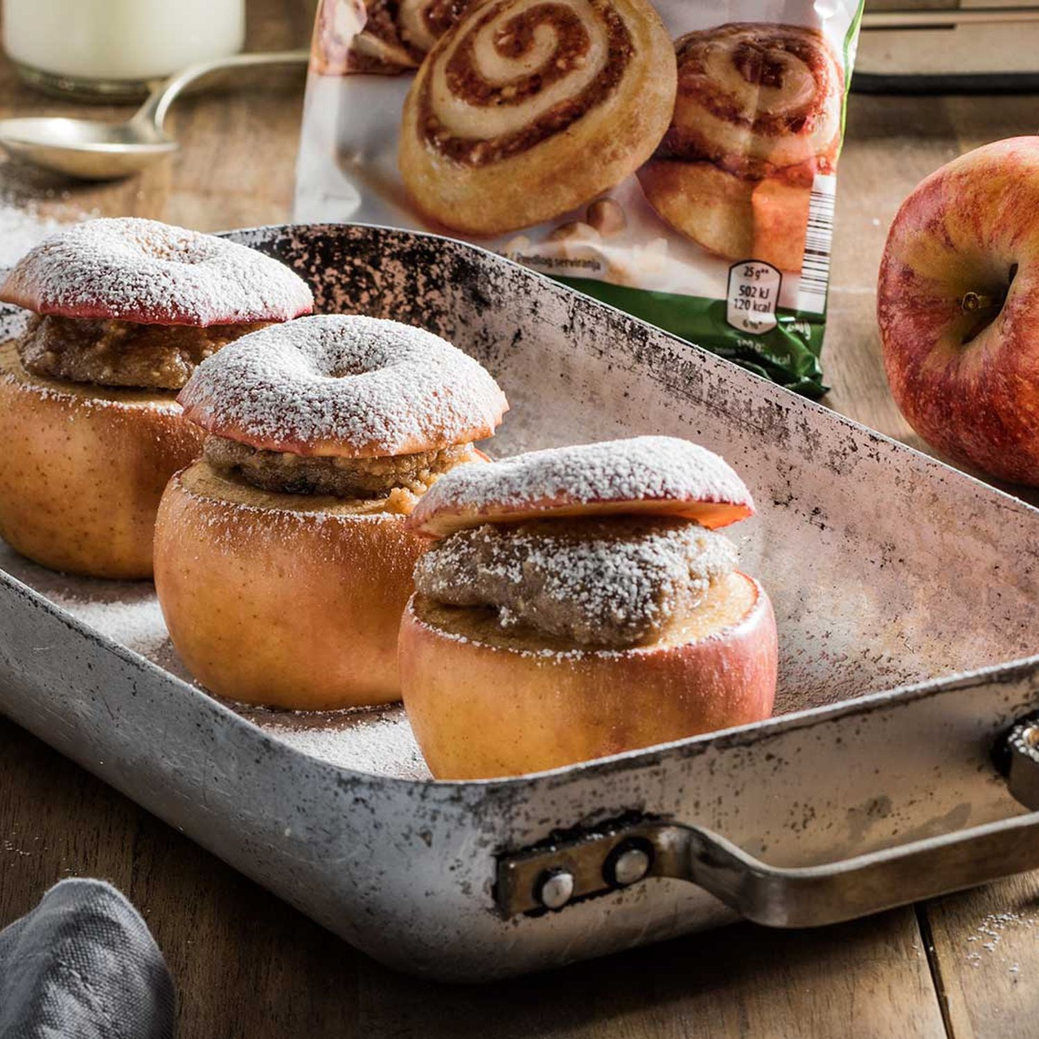 Die gefüllten Äpfel bei 160 °C ca. 30 Minuten backen.