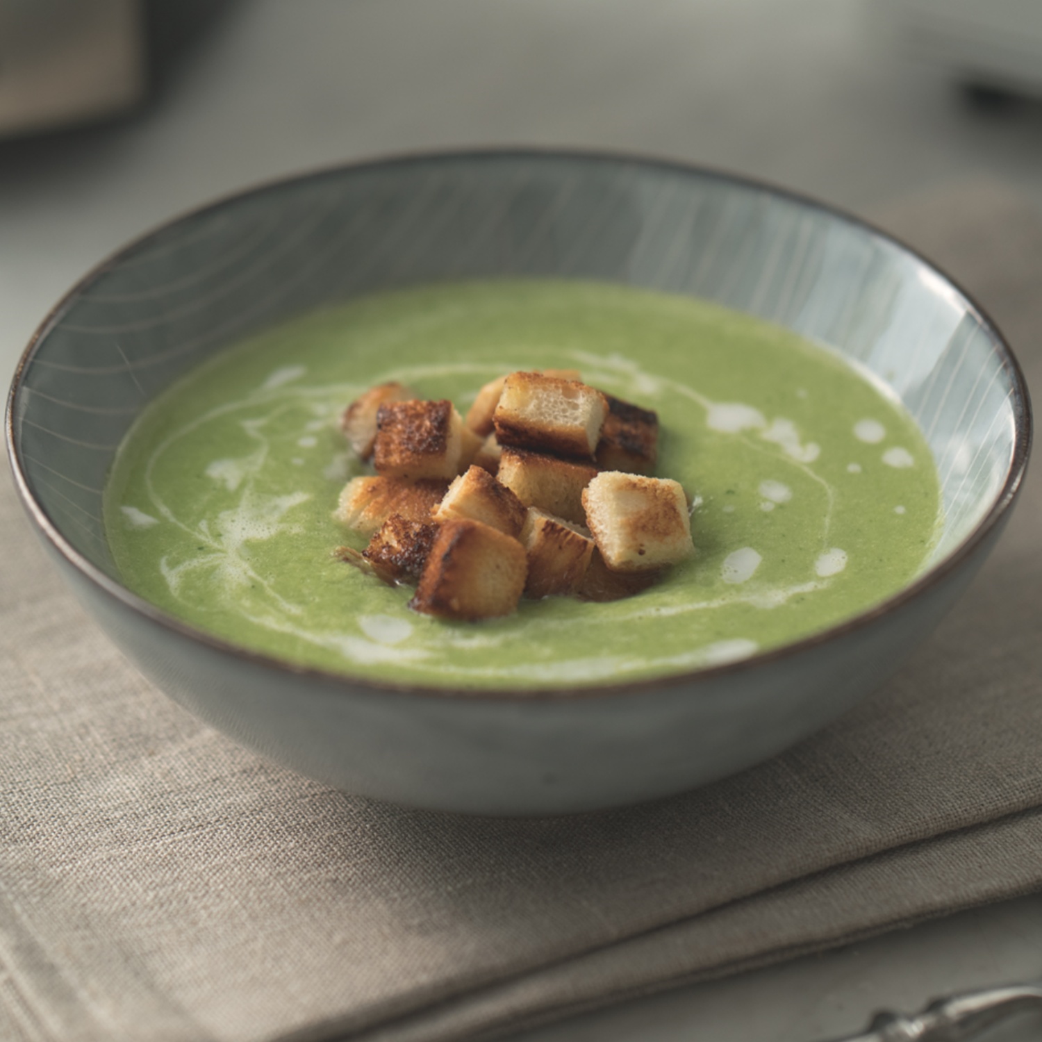 Einfacher lässt sich eine Suppe kaum zubereiten als diese Brokkolicreme-Suppe. Ein paar Croutons obendrauf geben der Suppe den richtigen Biss. Viel Spaß beim Nachkochen!
