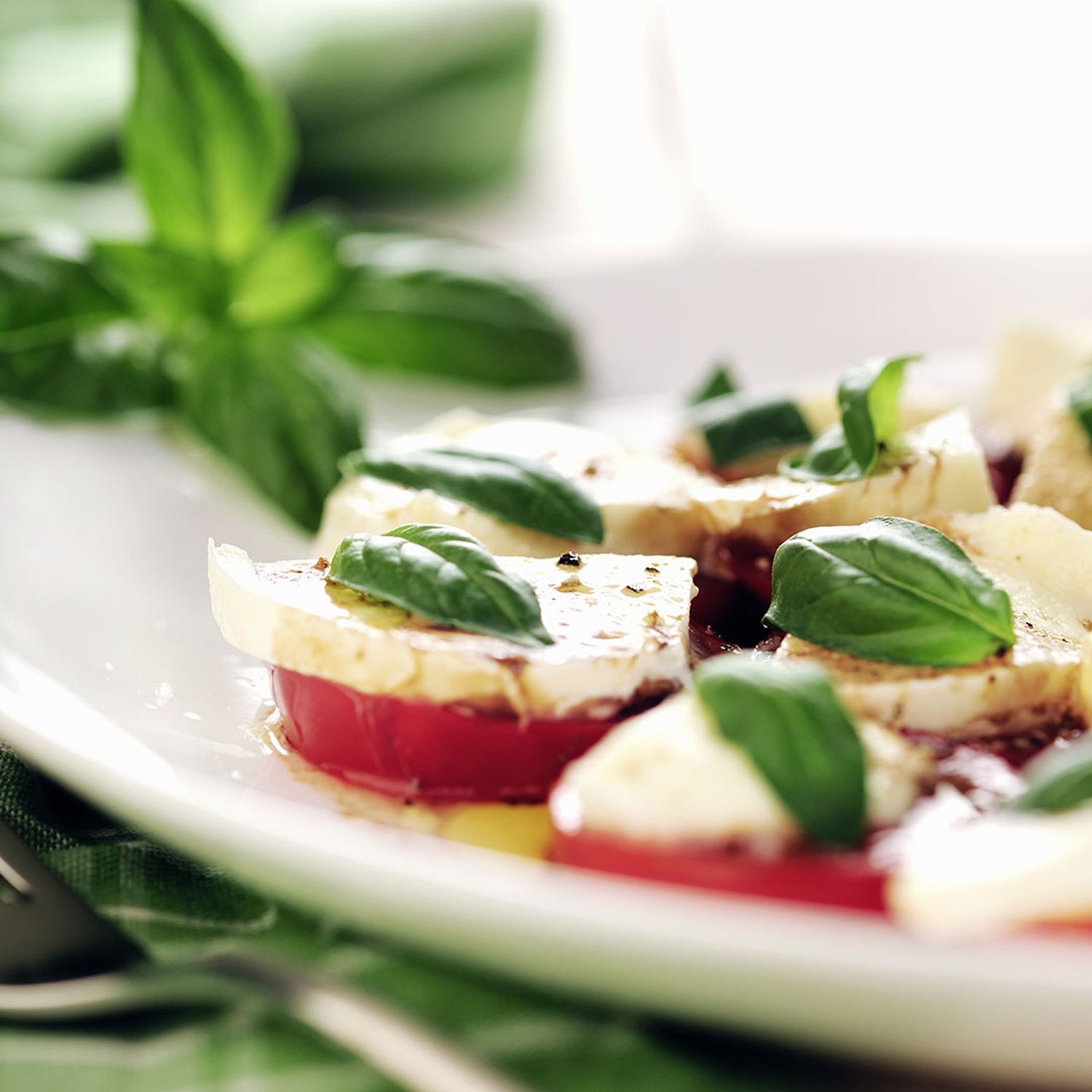 Frische Basilikumblätter waschen, abtupfen und auf dem Salat verteilen.