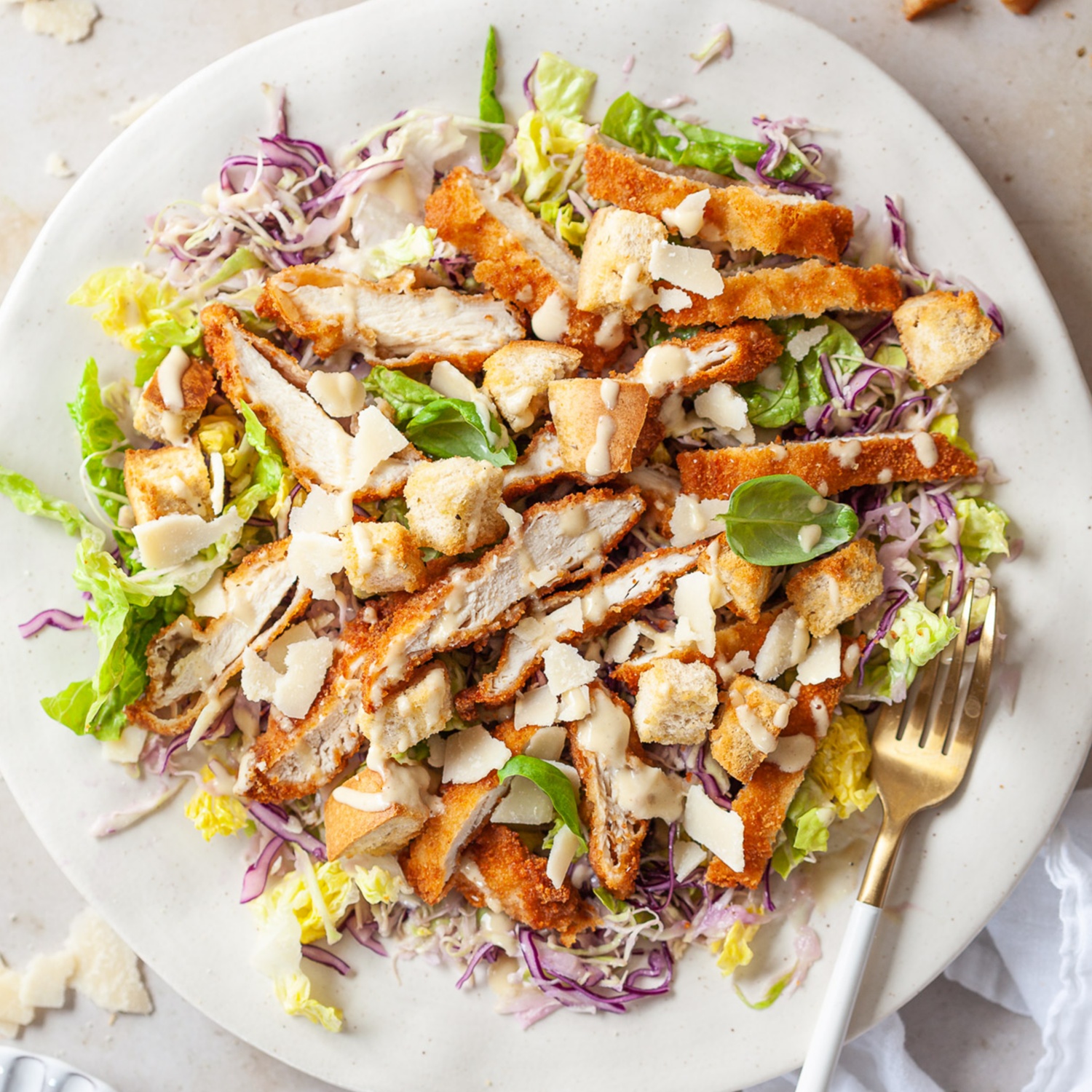 Ceasar Salat mit knusprigem Hühnerfilet