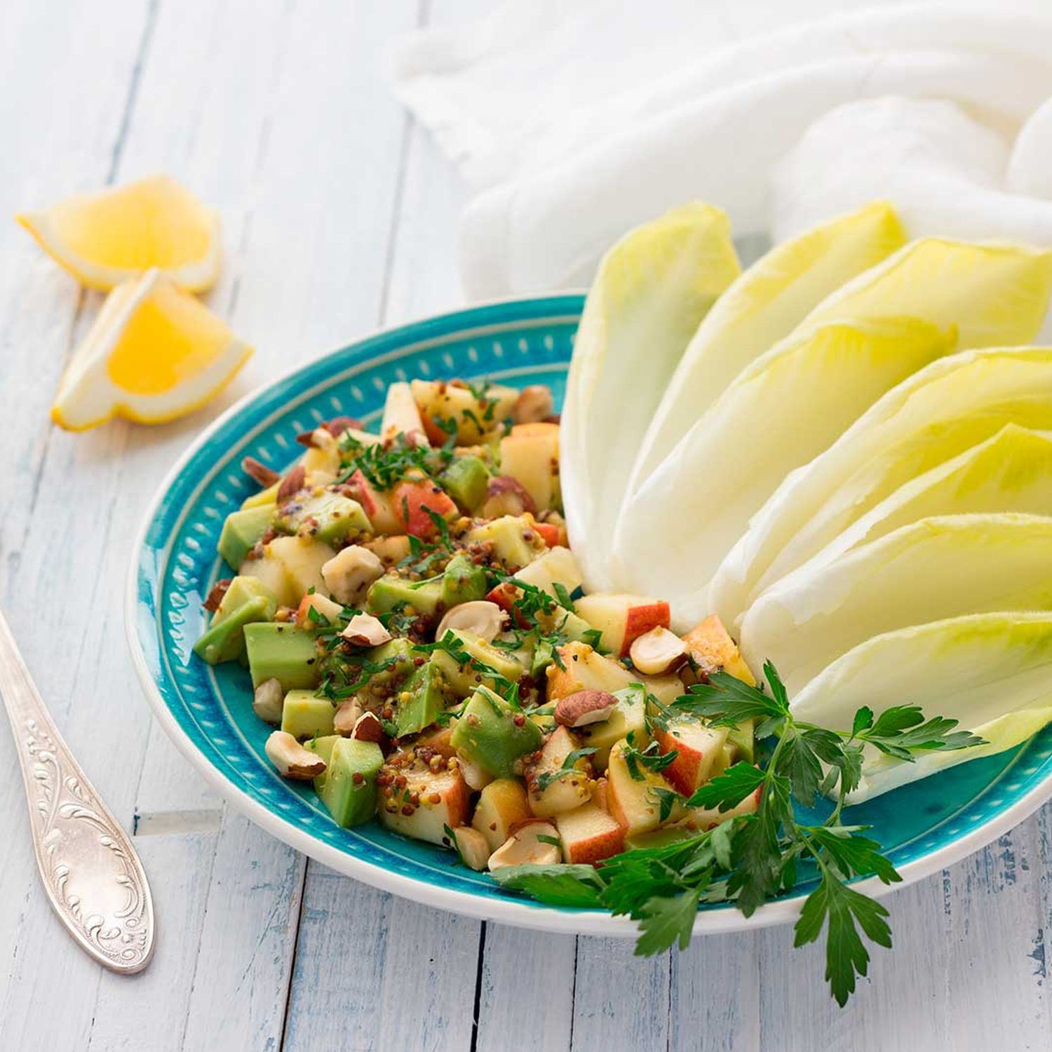 Chicorée-Salat mit Apfel, Avocado und Walnüssen