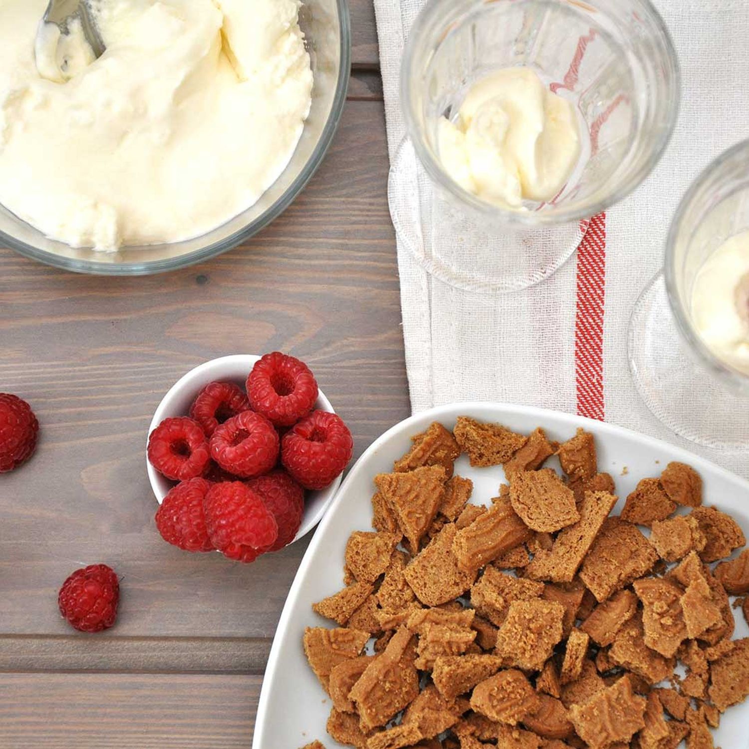 Die Creme wird besonders crunchy, wenn man noch ein paar gefrorene Gewürzspekulatius unterhebt!